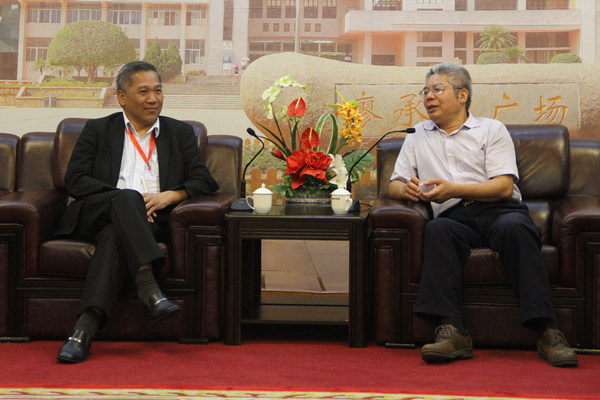 刘斌介绍了华侨大学的办学情况。他称赞“华大的马来西亚学生勤奋而优秀,人数不多但却十分活跃,二十四节令鼓、马来西亚文化节以及代表华大多次夺得CUBA冠军的马来西亚队员都是华大的品牌和骄傲。”