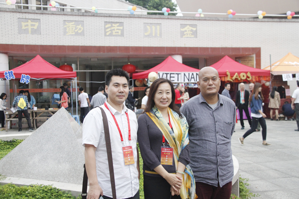 2014级公共管理专业的泰国留学生张繁教是华侨大学泰国同学会的现任会长。他称,同学们都很有活力,他们亲手烹制美食,只为向大家传播泰国的风情和文化。82级电子专业学生吴献群是此次受邀返回母校的校友,他说,华侨大学是承载他青春记忆的地方,这次回访母校最重要的是来庆贺母校的生日,同时也了解泰国同学会的现状。两人虽然相差32届,仍相谈甚欢。