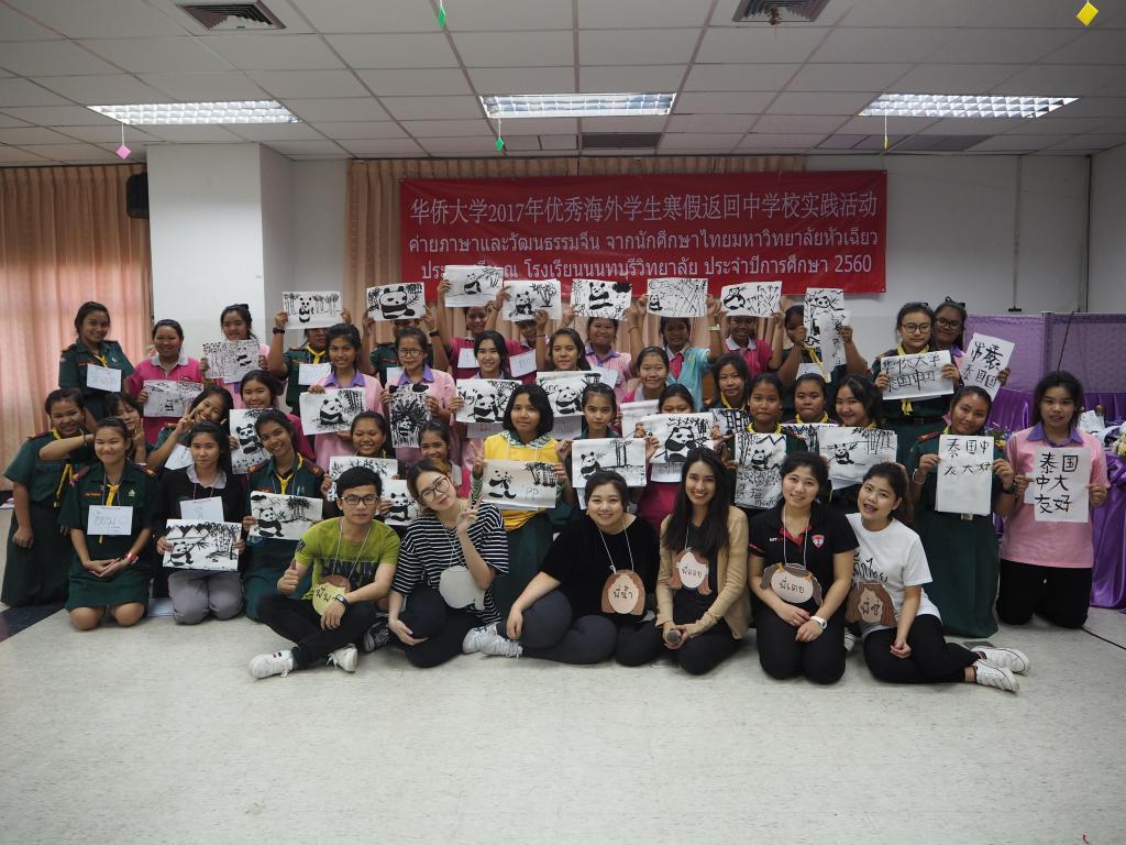 我校学生教授泰国学生写中国书法,画“中国熊猫”