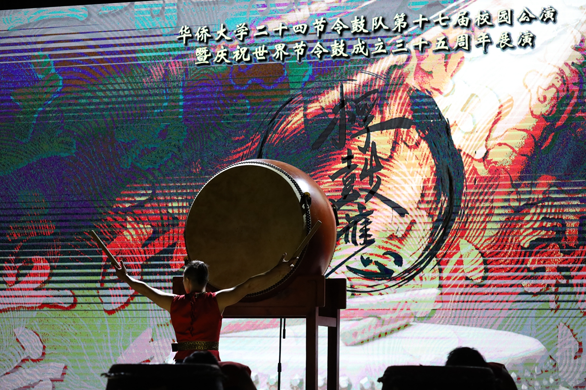 据了解,华侨大学二十四节令鼓队成立26年来,以鼓为器,传承中华优秀传统文化。每年夏初,鼓队都会举办一年一度的校园公演。彼时,鼓队所有队员们齐心协力,努力训练,已经毕业的鼓手们也会从五湖四海回到华园,共同享受这一盛宴。