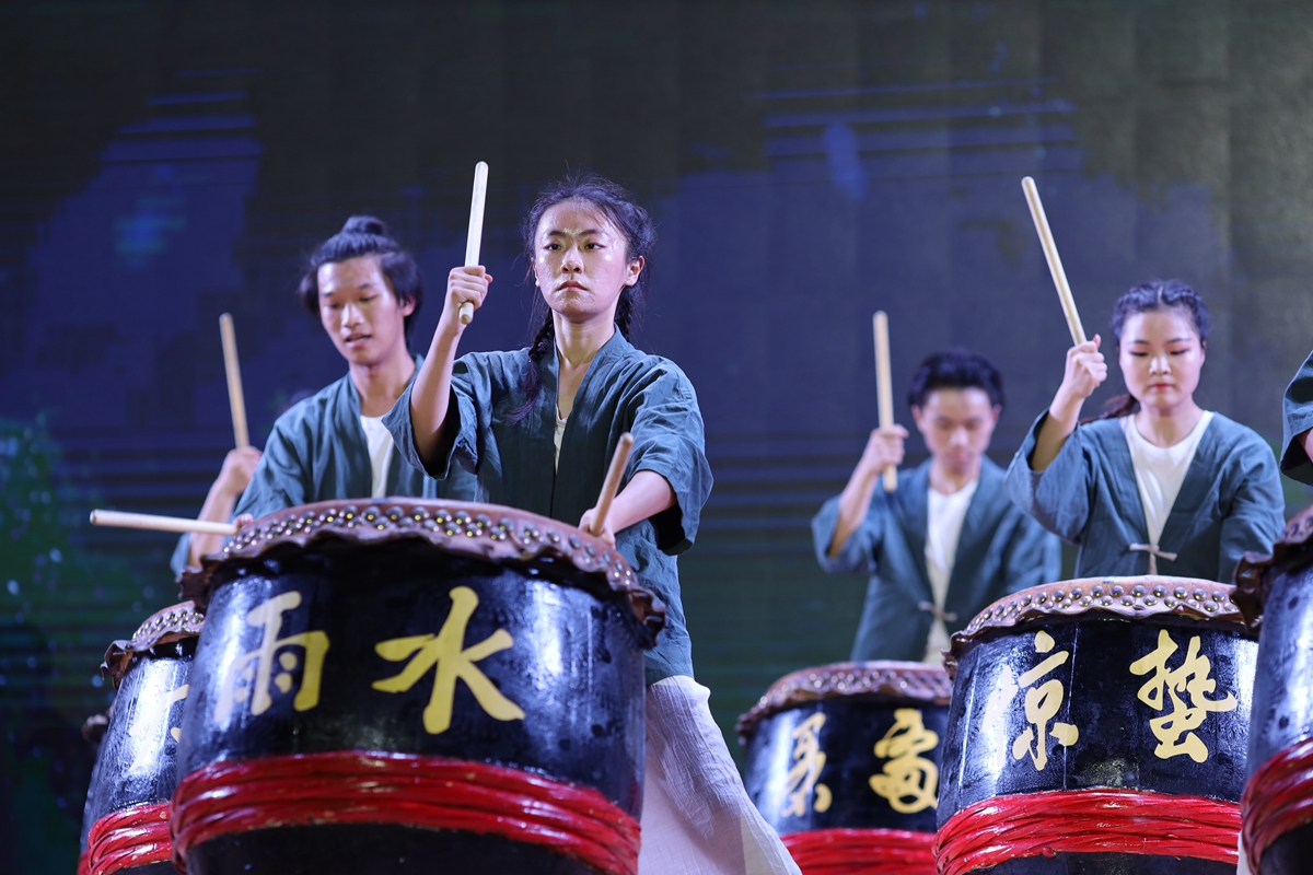 在“碰撞”篇章,由我校马来西亚留学生组成的二十四节令鼓队率先带来节目《朴》,表现广东狮虎表演遇上节气文化的新气象,整齐而富有力量的敲击声,化繁为简,制造出气势磅礴的观感体验,以最磅礴的鼓声震撼每一位观众的心灵。由泉厦鼓队带来的《源》《沙》呼应主题,表现鼓队新鲜血液的注入,与节令鼓的邂逅。