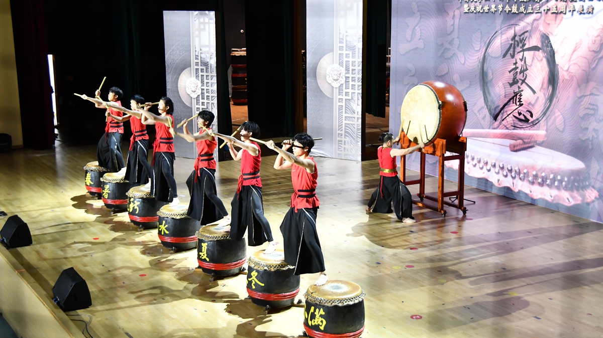 2023年是世界节令鼓成立35周年,本次公演也以“桴鼓应”为主题,用“桴鼓相应”寓意队伍团结向上,交融向好。在热情洋溢的氛围中,华侨大学泉厦两校区二十四节令鼓队、马来西亚学生节令鼓队以及校友鼓队等,携手同台演出,共同庆祝节令鼓的35周岁生日。