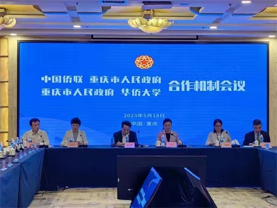 5月18日,中国侨联与重庆市人民政府关于共同推进重庆建设内陆开放高地合作机制会议、重庆市人民政府与华侨大学关于共同推进西部(重庆)科学城建设合作机制会议在渝召开。中国侨联党组成员、副主席连小敏,重庆市委常委、统战部部长卢红,华侨大学党委常委、副校长王丽霞出席会议。会上,与会各方围绕落实协议、推进合作作交流发言。