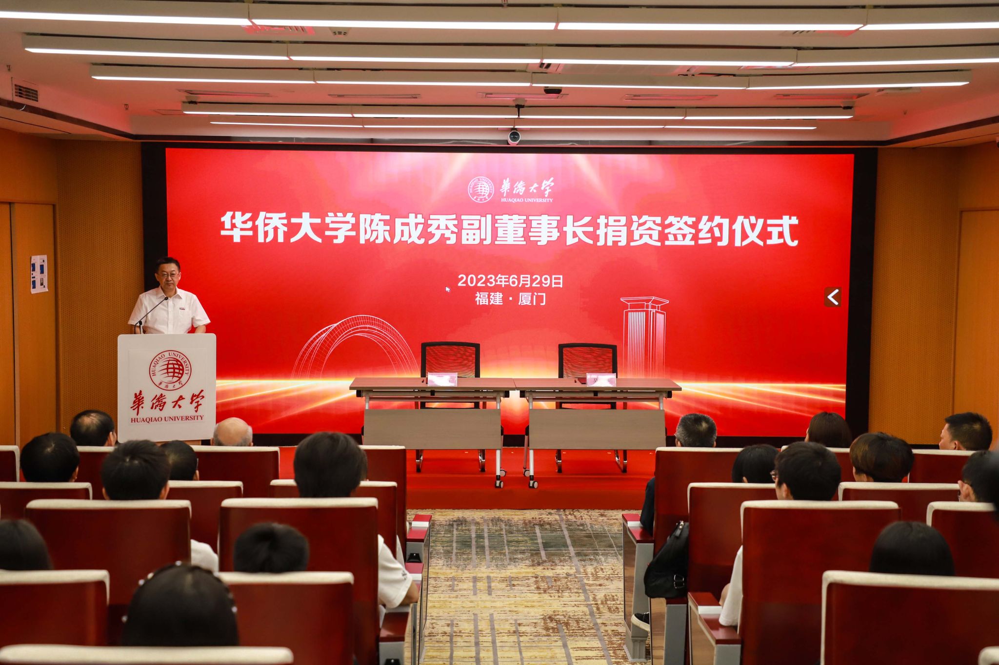 香港大庆集团有限公司董事长、我校董事会副董事长陈成秀先生慷慨捐资3000万元人民币,继续支持厦门校区“徐湘琴游泳馆”建设。