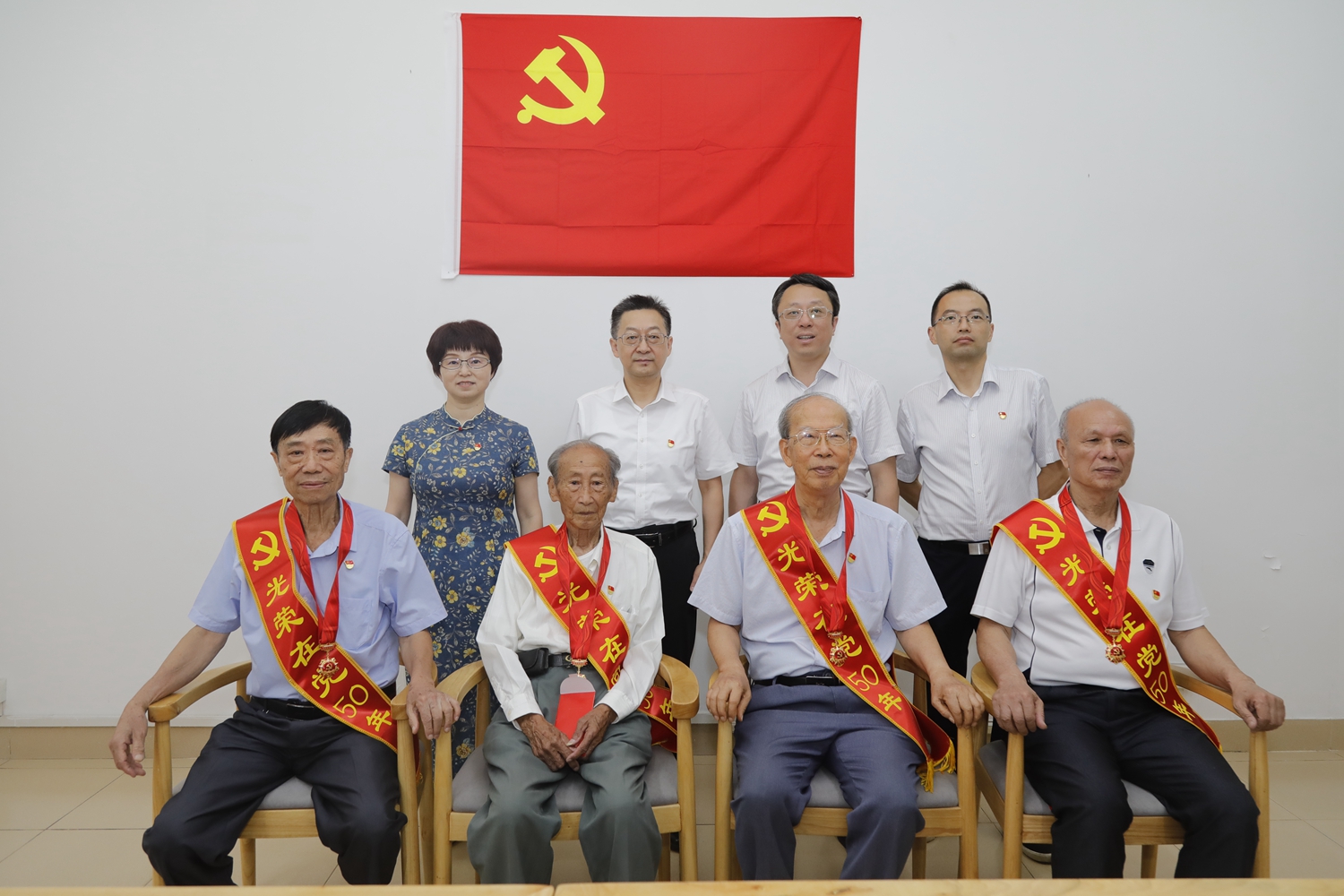 6月30日,“七一”建党节前夕,我校举行“光荣在党50年”老党员座谈会暨纪念章颁发仪式。校党委书记徐西鹏为吴汉洲、陈琼祥、罗大钧、何占铭、杨国清5位我校今年党龄达到50周年的老党员颁发“光荣在党50年”纪念章和慰问金,赞扬老党员们忠诚于党、为党奉献的精神,感谢他们为学校发展建设作出的贡献。