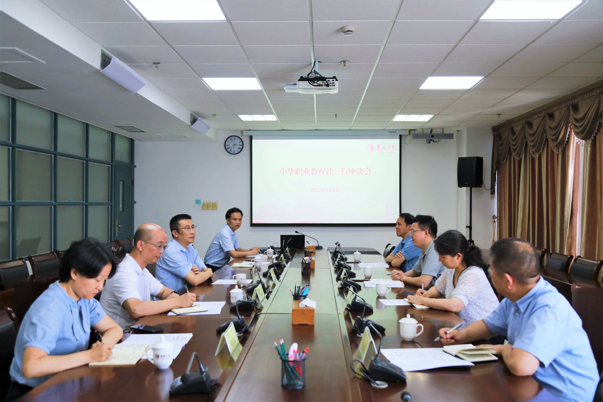 7月5日下午,校长吴剑平在厦门校区会见中华职教社(总社)副总干事、党组成员王松涛一行。