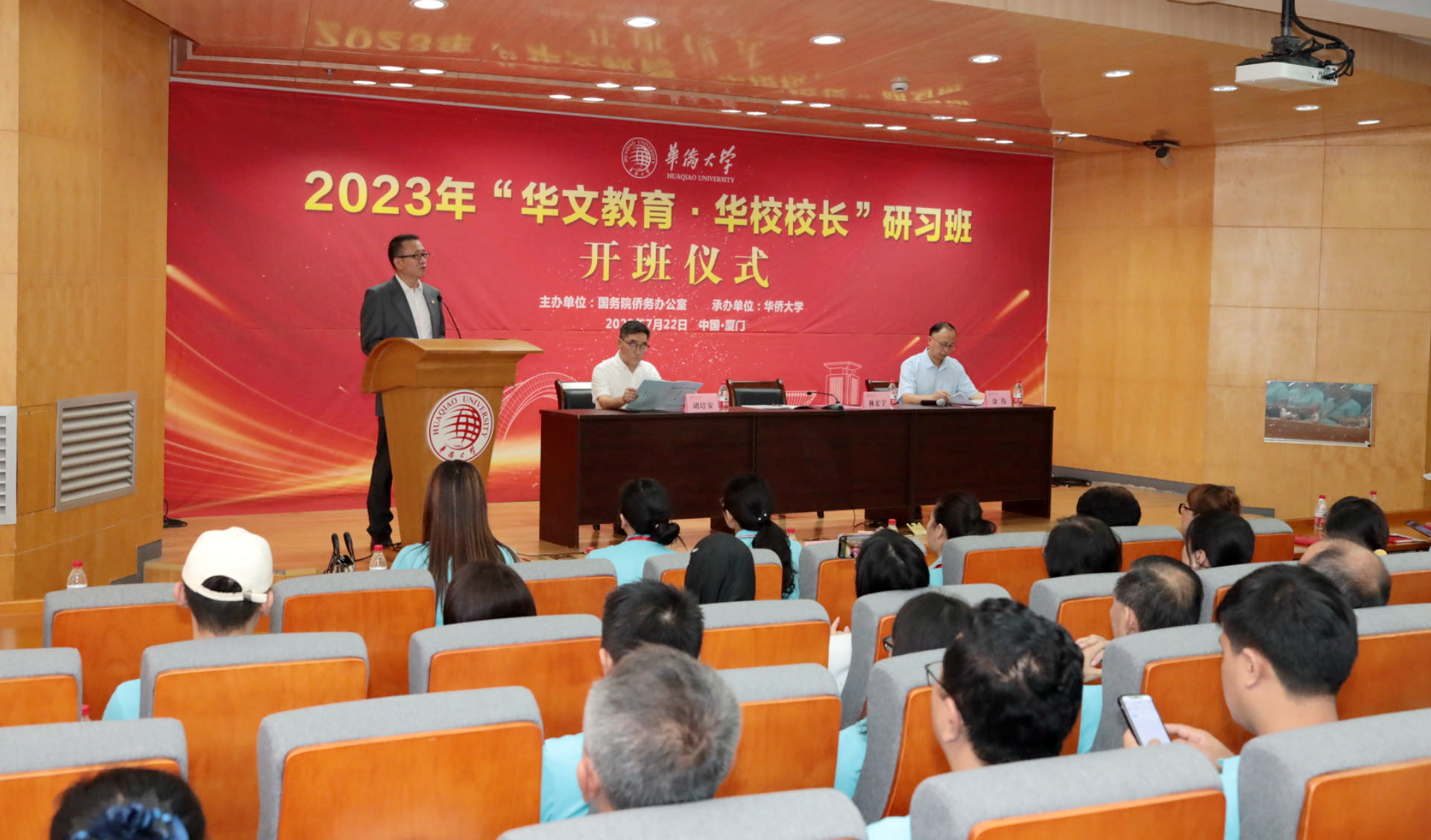7月22日,由国务院侨务办公室主办,华侨大学承办的2023年“华文教育·华校校长”研习班在厦门校区开班。来自泰国、老挝、缅甸、马来西亚、印度尼西亚、文莱、法国、意大利、德国、英国、西班牙、斯洛伐克、毛里求斯、牙买加、新西兰等27个国家的近90位海外华校校长及管理人员参加。副校长林宏宇,华文教育处、华文学院负责人等出席开班仪式。