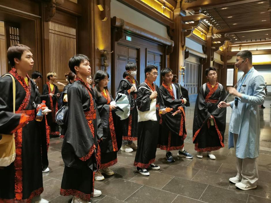 我校中原文化研习营40名港澳台侨及留学生追寻领袖足迹,前往郑州、登封、洛阳等地开展研学考察,在河南博物院了解中原历史、鉴赏国之瑰宝;在嵩山少林寺习武练拳,了解禅宗和武术的源起与发展;前往龙门石窟、白马寺研习东方美学。