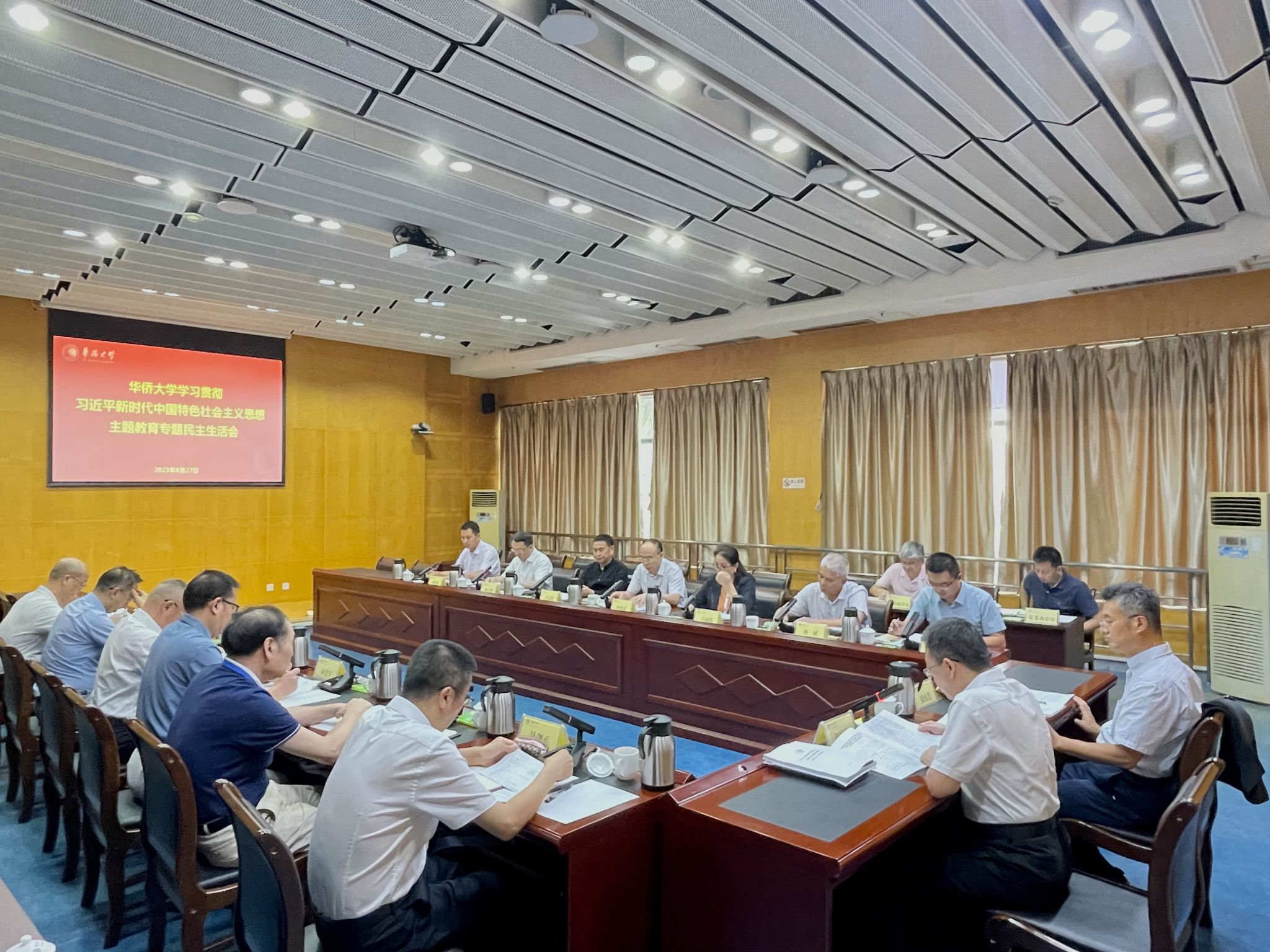 根据党中央部署和中央统战部、部主题教育领导小组安排,8月27日,华侨大学党委召开党员领导干部学习贯彻习近平新时代中国特色社会主义思想主题教育专题民主生活会,聚焦学思想、强党性、重实践、建新功总要求,对照凝心铸魂筑牢根本、锤炼品格强化忠诚、实干担当促进发展、践行宗旨为民造福、廉洁奉公树立新风具体目标,深入学习领悟以学铸魂、以学增智、以学正风、以学促干丰富内涵和实践要求,聚焦6个方面突出问题和12条具体要求,检视差距不足,进行党性分析,剖析典型案例,开展批评和自我批评,坚定捍卫“两个确立”,坚决做到“两个维护”。