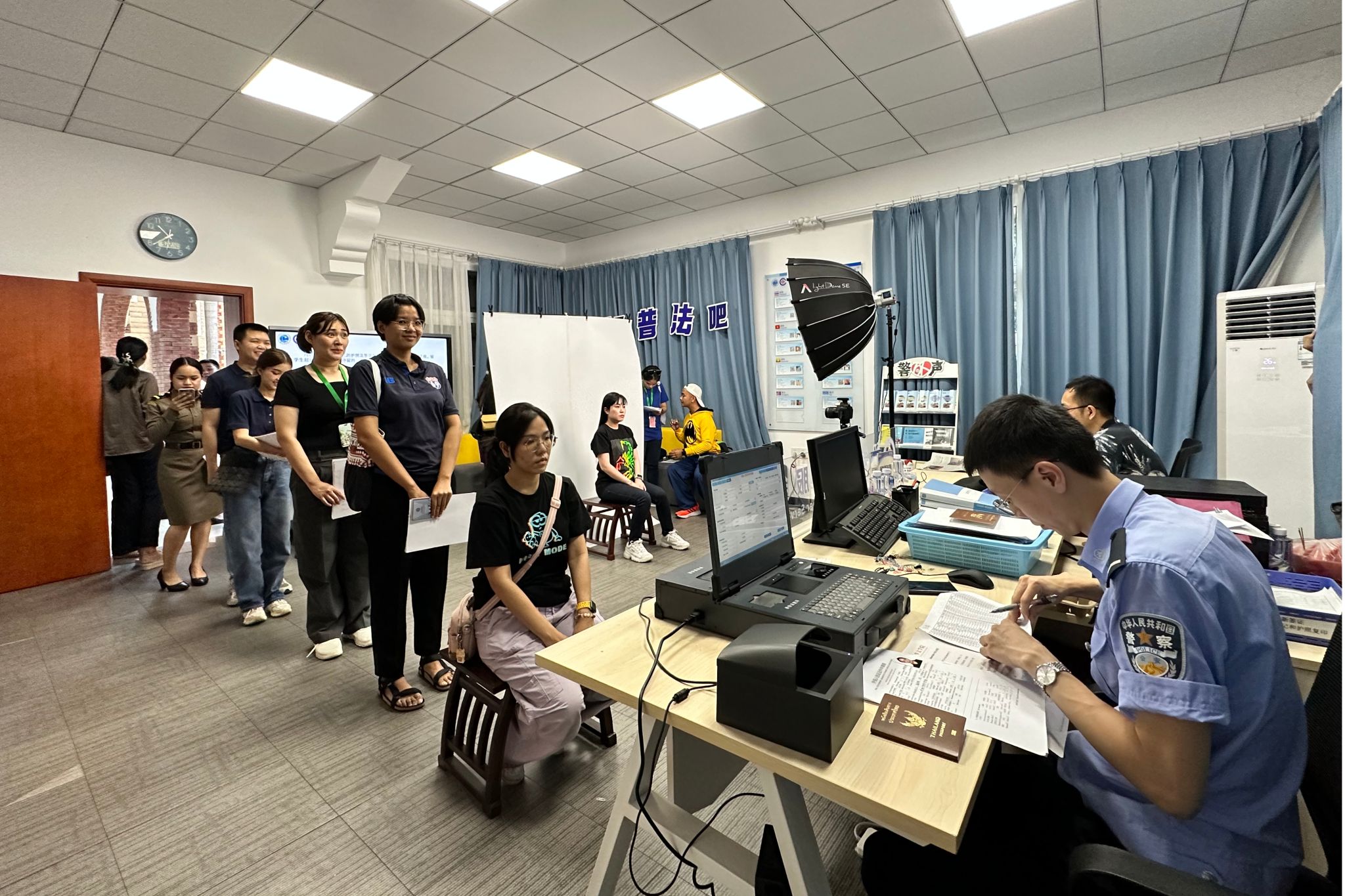 为方便留学生们办理留学签证,9月份以来,厦门市公安局出入境管理支队定期上门为我校留学生受理证件办理业务。留学生们在校内留学生管理服务站直接递交签证办理材料、采集照片和个人信息,享受“一站式”“码上办”服务。