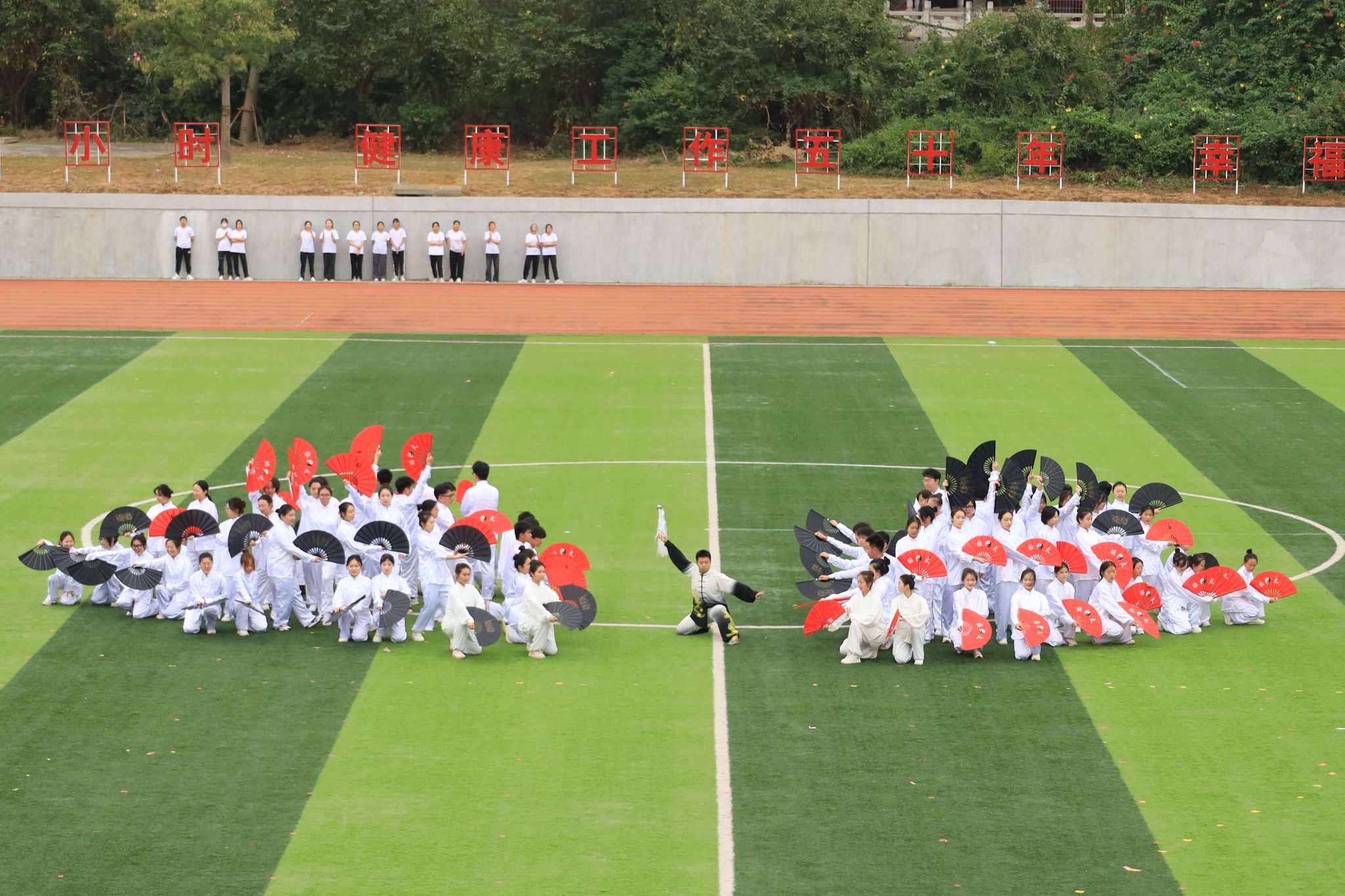 文体表演环节,武术协会的师生手持太极扇,展示了中国传统武术文化的独特魅力;大型表演操中,1000名华大学子手持彩扇,摆出“华大”二字造型,表达对学校的爱恋;学校啦啦操街舞队表演《我和我的祖国》,散发出华大学子的激情与活力,表达对祖国母亲的爱和美好祝愿。