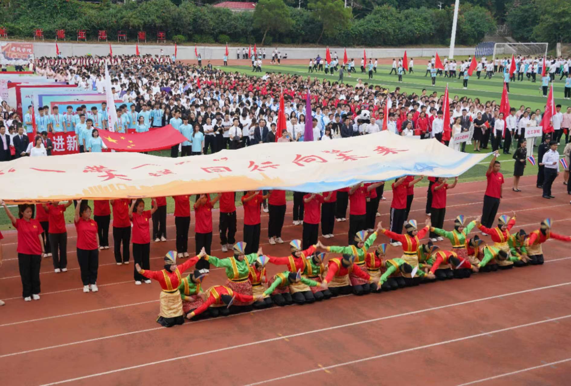机电学院用“我爱HQU”气球满载学子们的祝福,深情告白华大;材料学院结合学科特点,运用化学原理,现场展现出“会通中外、并育德才”学校办学理念字样;音舞学院舞动《同爱同在》,延续亚运会精神,期待与各院系共享赛场的精彩……今年恰逢“一带一路”倡议提出十周年,华文学院各国留学生挥舞着本国国旗,表达“ ‘一带一路’我带路,大道同行向未来”的美好心愿;信息学院、计算机学院、新传学院、土木学院等结合专业特色,展现出愿为共建数字“一带一路”、绿色“一带一路”贡献力量的愿望。