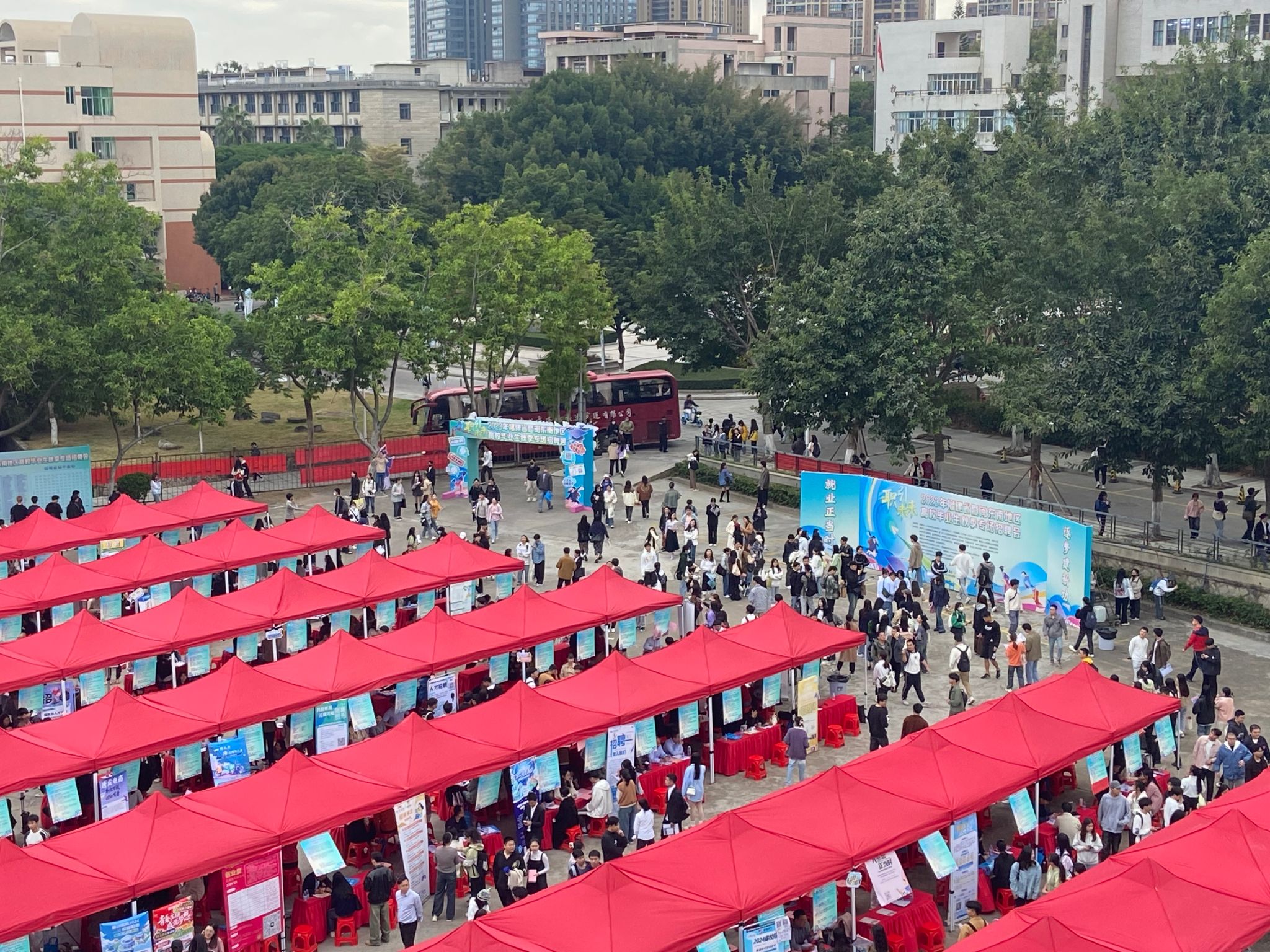 俯瞰招聘会场,十余所高校的三千余名毕业生来到现场求职