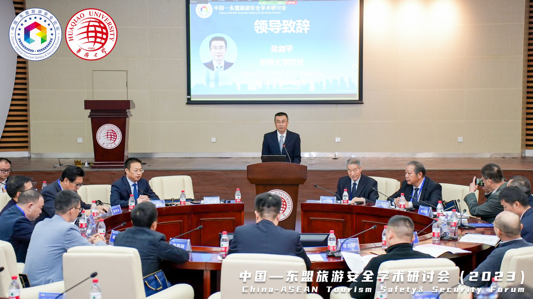 吴剑平对参会各方表示欢迎,并简要介绍了学校的办学特色。他指出,旅游是促进文化交流、增进人民友谊的桥梁,也是满足人民对美好生活需要的重要途径和推动经济社会发展的有力引擎。华侨大学将以此次研讨会为契机,进一步加强旅游安全研究和旅游学科建设,助力中国与东盟旅游产业繁荣发展。