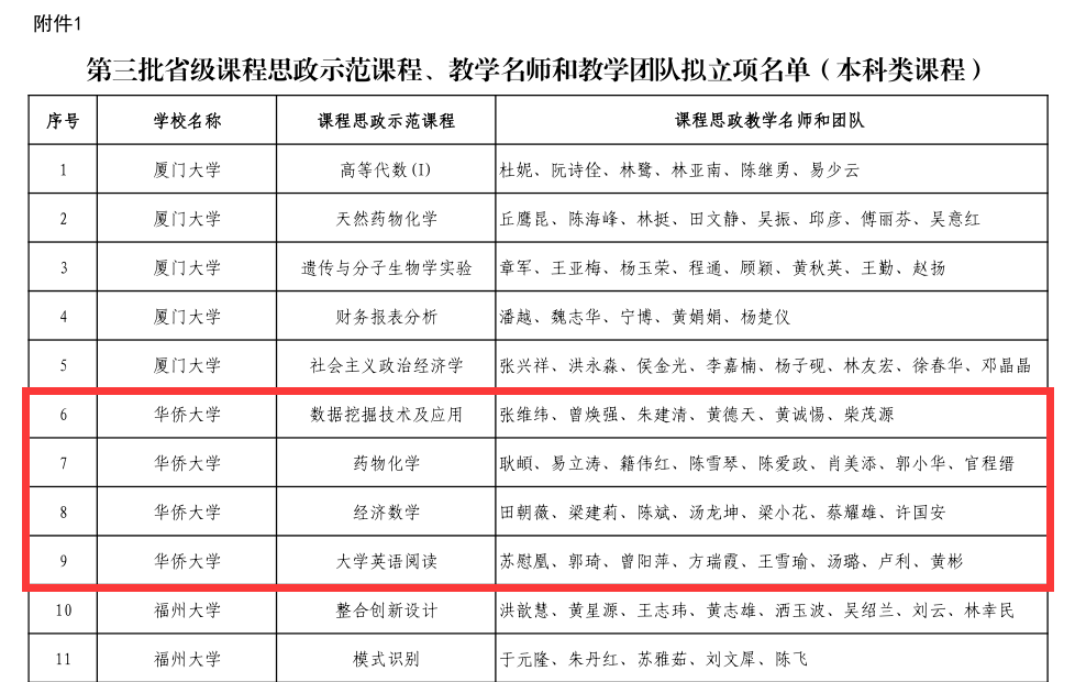 四门本科类课程入选福建省课程思政示范课程