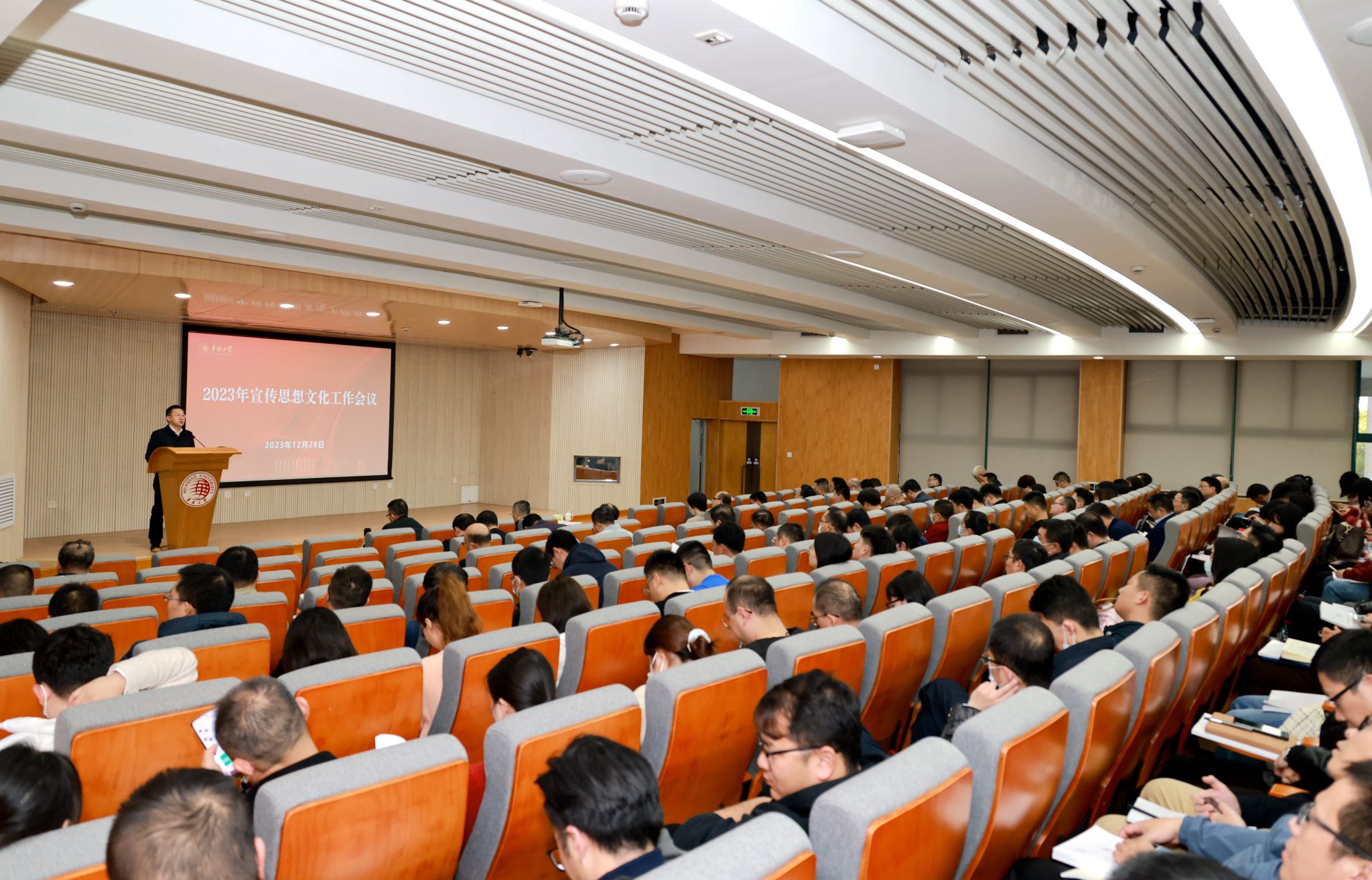 校党委常委、副校长林宏宇在会上传达了习近平总书记对宣传思想文化工作的重要指示和全国、全省宣传思想文化工作会议精神,总结梳理了2023年学校宣传思想文化工作。