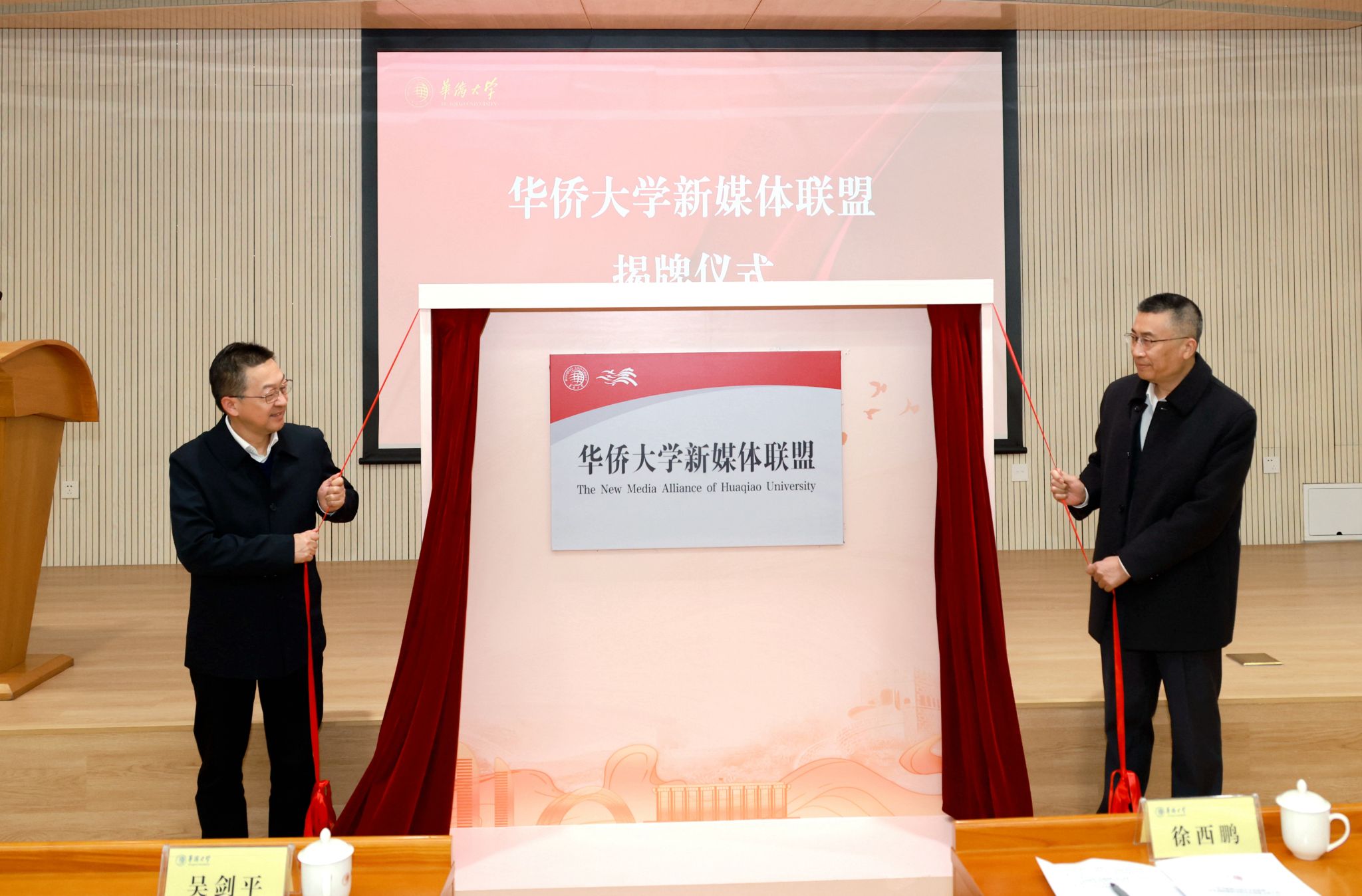 徐西鹏、吴剑平为“华侨大学新媒体联盟”揭牌