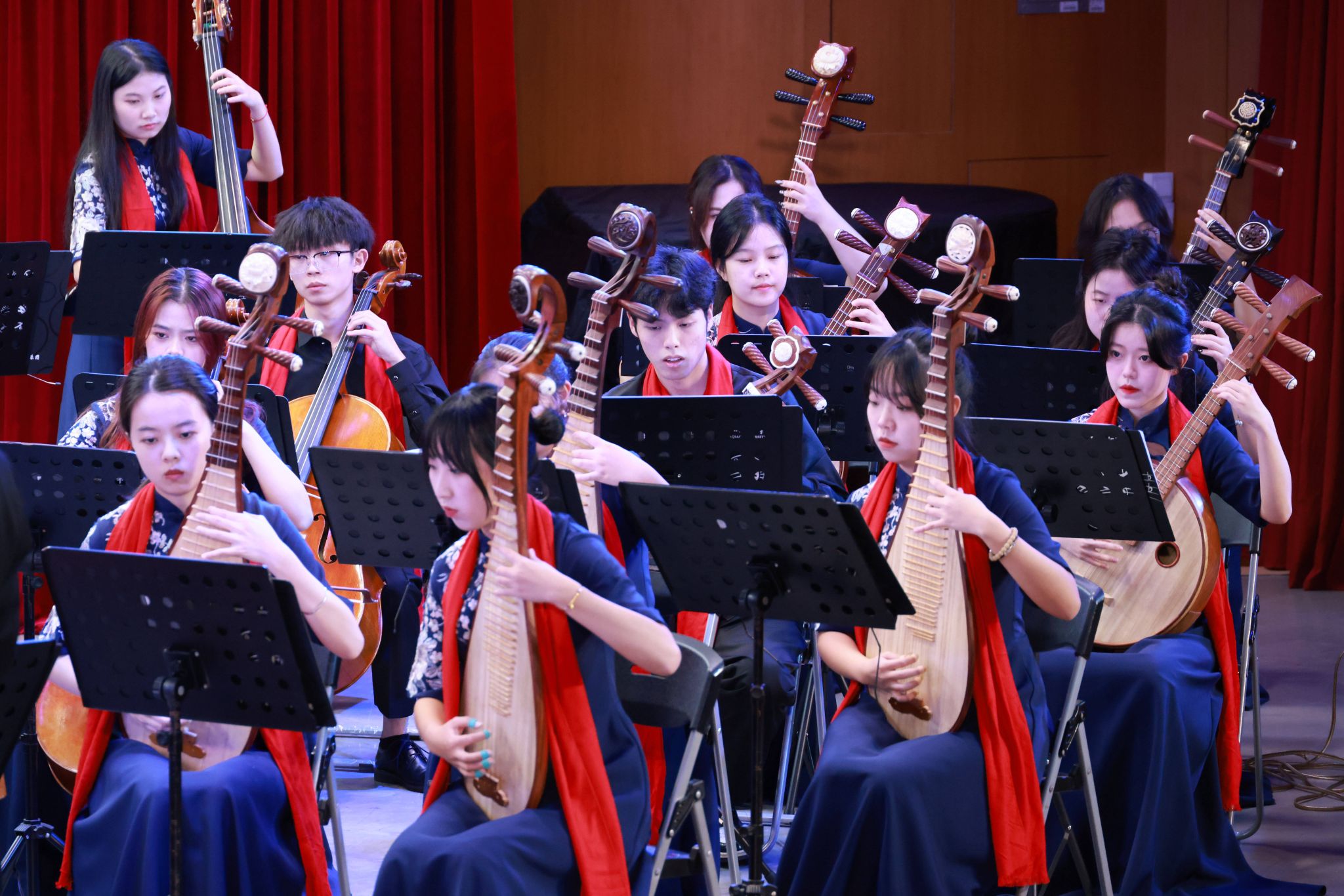 12月29日晚,华侨大学2024新年音乐会在李碧葱音乐舞蹈大楼演播厅上演,海内外师生沉浸在隽永的民族音乐中喜迎新年。音乐会同步通过学校官方平台向全球直播。
