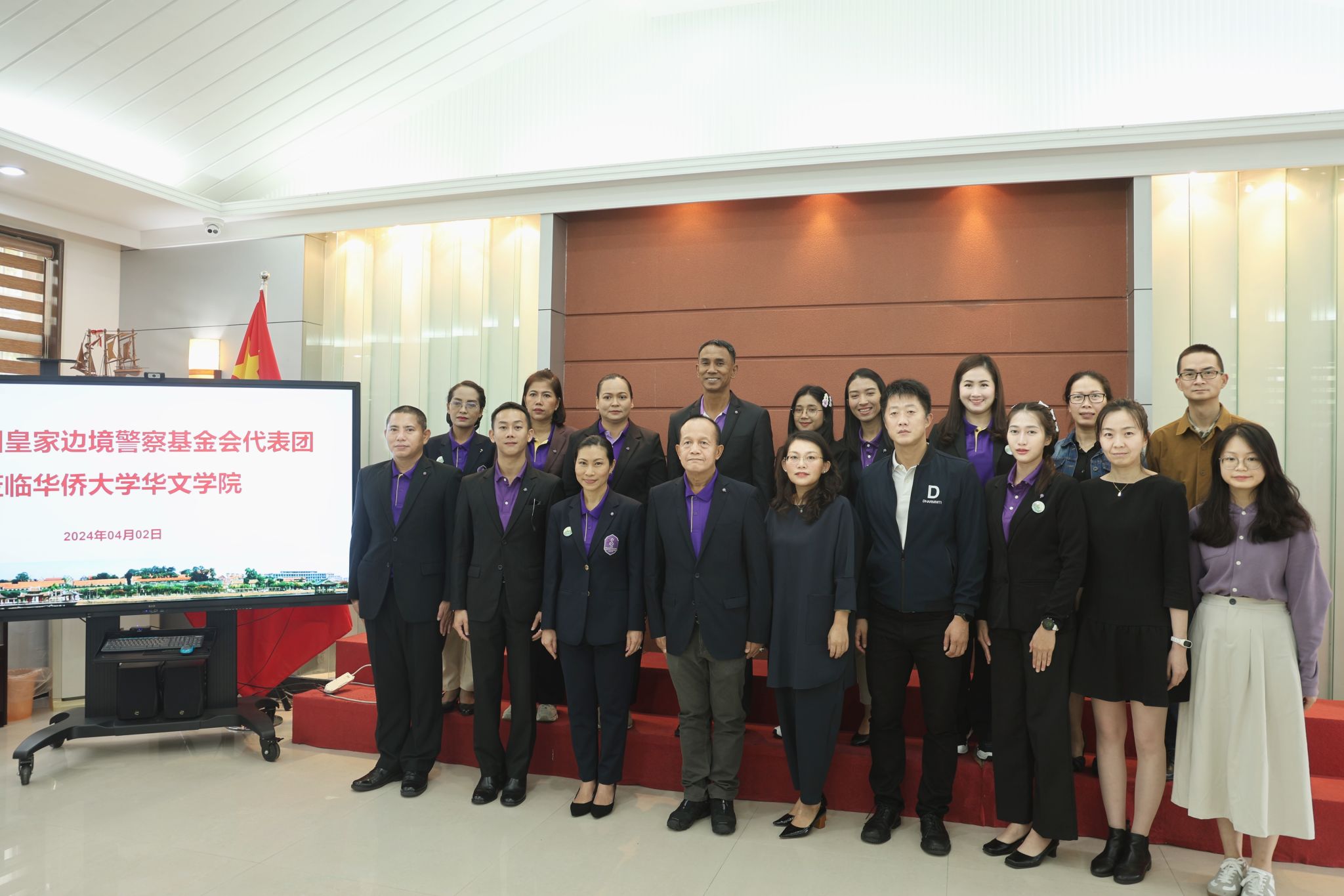 泰国皇家边境警察基金会长期致力于发展泰中友好关系,多次派送边境警察来校学习。本次代表团多位成员,就曾为华侨大学外国政府官员中文学习班学员,包括第5期学员、现泰国皇家边境警察司令部后勤局副局长王大雄,第7期学员、现泰国皇家淮籁(音译)警察派出所所长陈正义,第8期学员、现泰国皇家第三区边境警察局人事处主任李秋燕,第12期学员、现泰国皇家边境警察司令部卫健处主任李丰雅,第15期学员、现泰国皇家第327区边境警察中队总队长刘文远等。