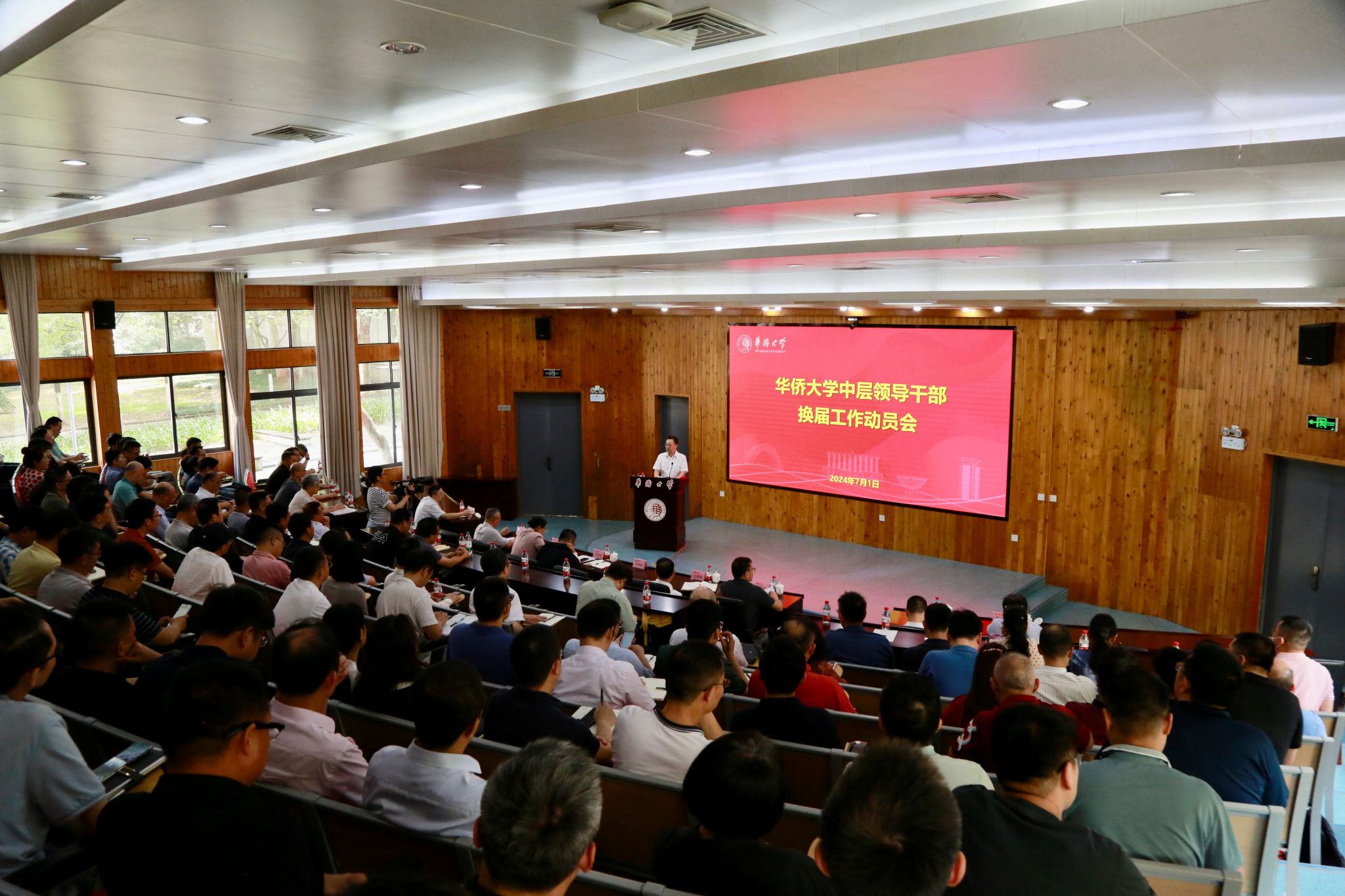 7月1日,我校在庄为烜报告厅召开中层领导干部换届工作动员会,校党委书记徐西鹏作动员部署,校长吴剑平主持会议。
