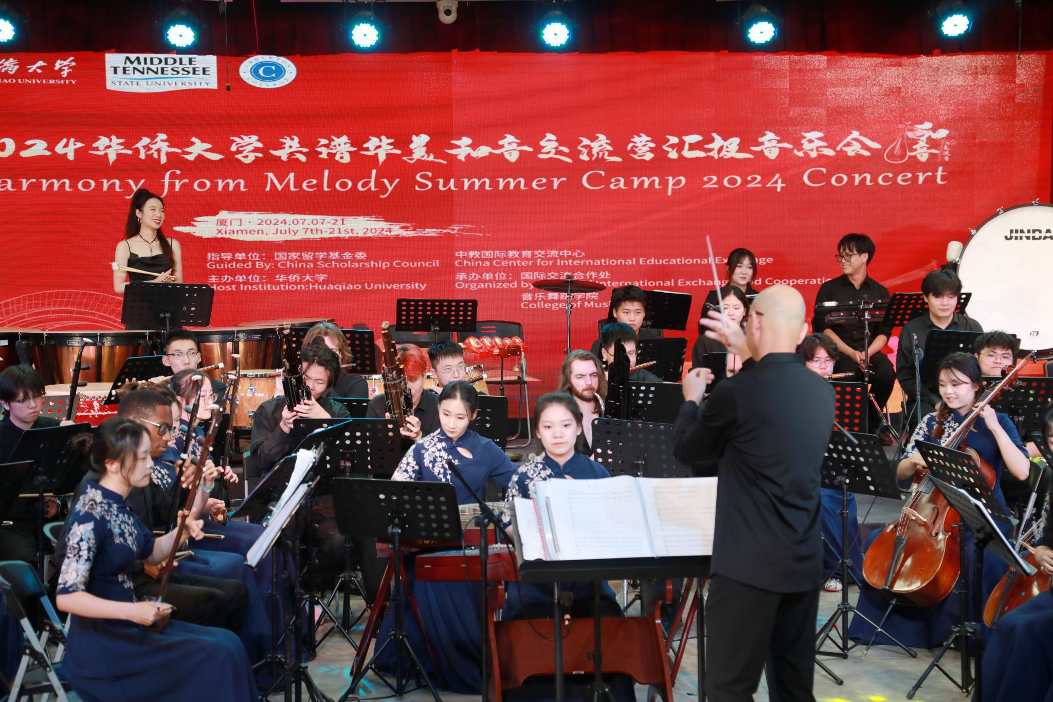 7月13日晚,华侨大学“共谱华美和音”交流营汇报音乐会在李碧葱音乐舞蹈大楼演播厅激情上演。这场由华侨大学国际交流合作处与音乐舞蹈学院联合主办的音乐盛宴,不仅展示了中美青年音乐才子的卓越风采,更架起了两国文化交流的友谊桥梁。