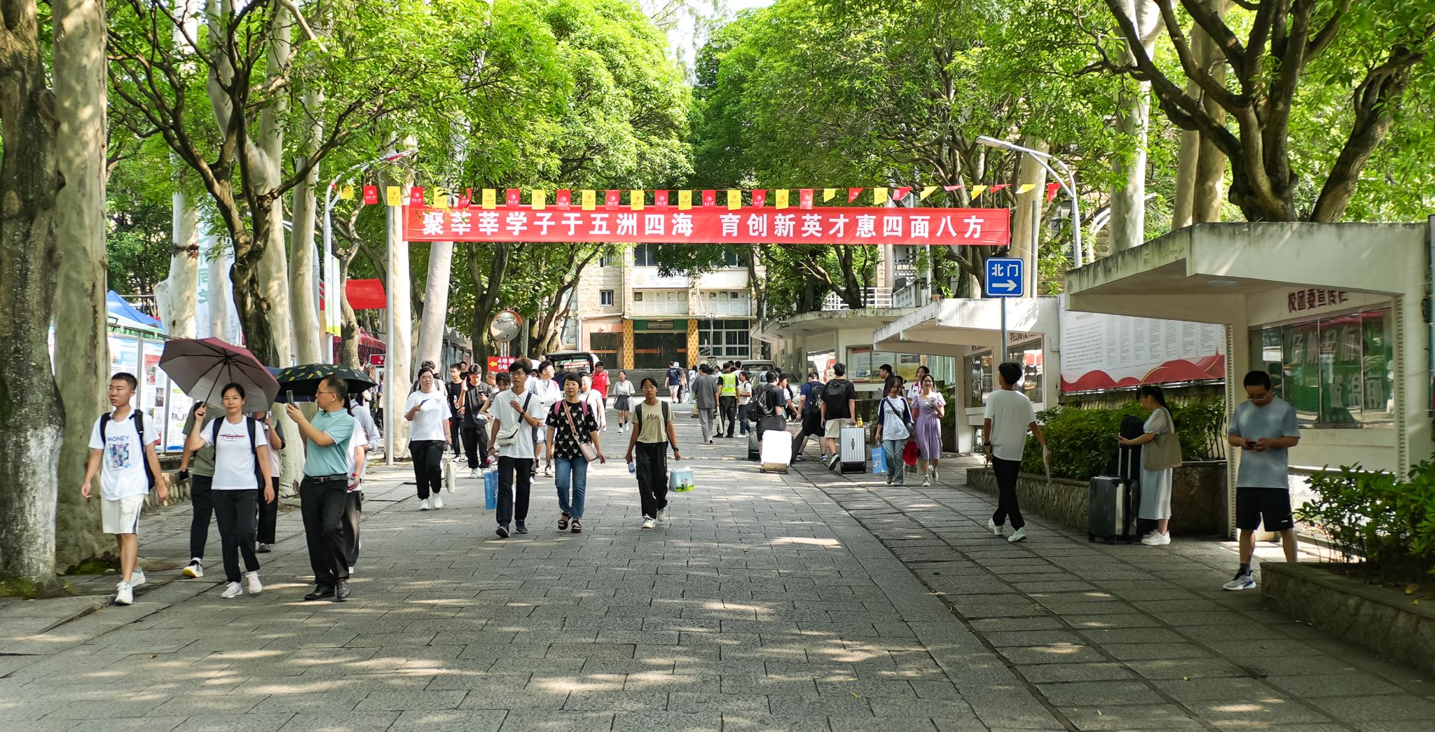 “热烈欢迎2024级海内外新同学!”一年一度的红色横幅再度拉起,校园处处洋溢着最饱满的热情。身份核验、入校引导、行李搬运……新生入学工作有序进行,一批又一批新生顺利进校,入住华园。