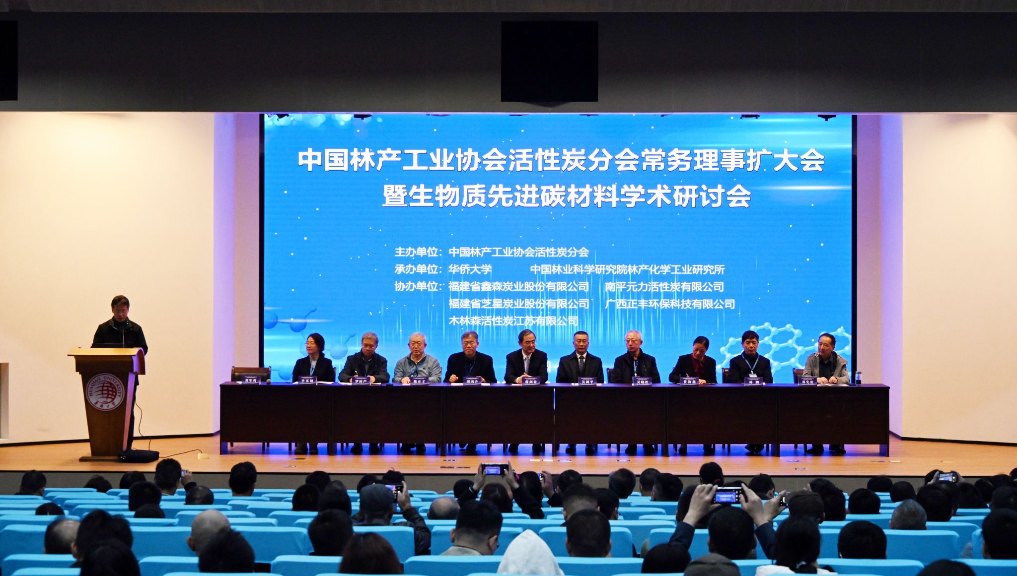 12月13日至15日,中国林产工业协会活性炭分会常务理事扩大会暨生物质先进碳材料学术研讨会在华侨大学厦门校区召开。中国工程院院士蒋剑春、华侨大学校长吴剑平、中国林产工业协会会长周鸿升等出席会议开幕式并致辞。来自国内70余家企业、高校和科研院所的200余名代表出席了研讨会。本次研讨会由中国林产工业协会活性炭分会主办,华侨大学、中国林业科学院林产化学工业研究所联合承办。
