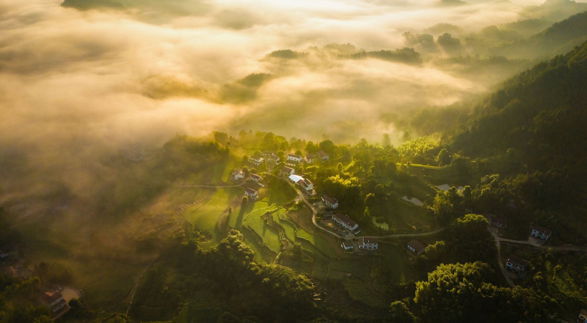 一等奖作品《晨雾村庄》 作者:汪昱 华侨大学