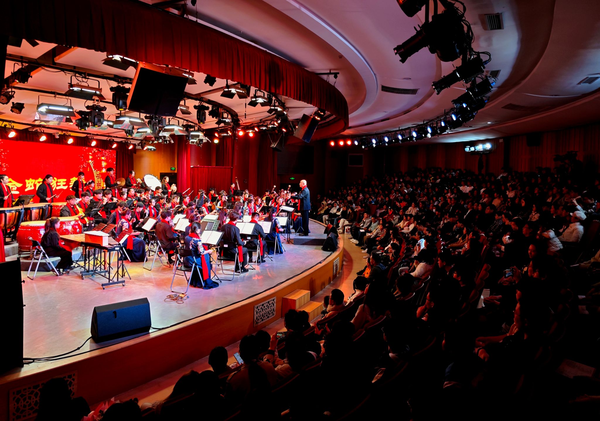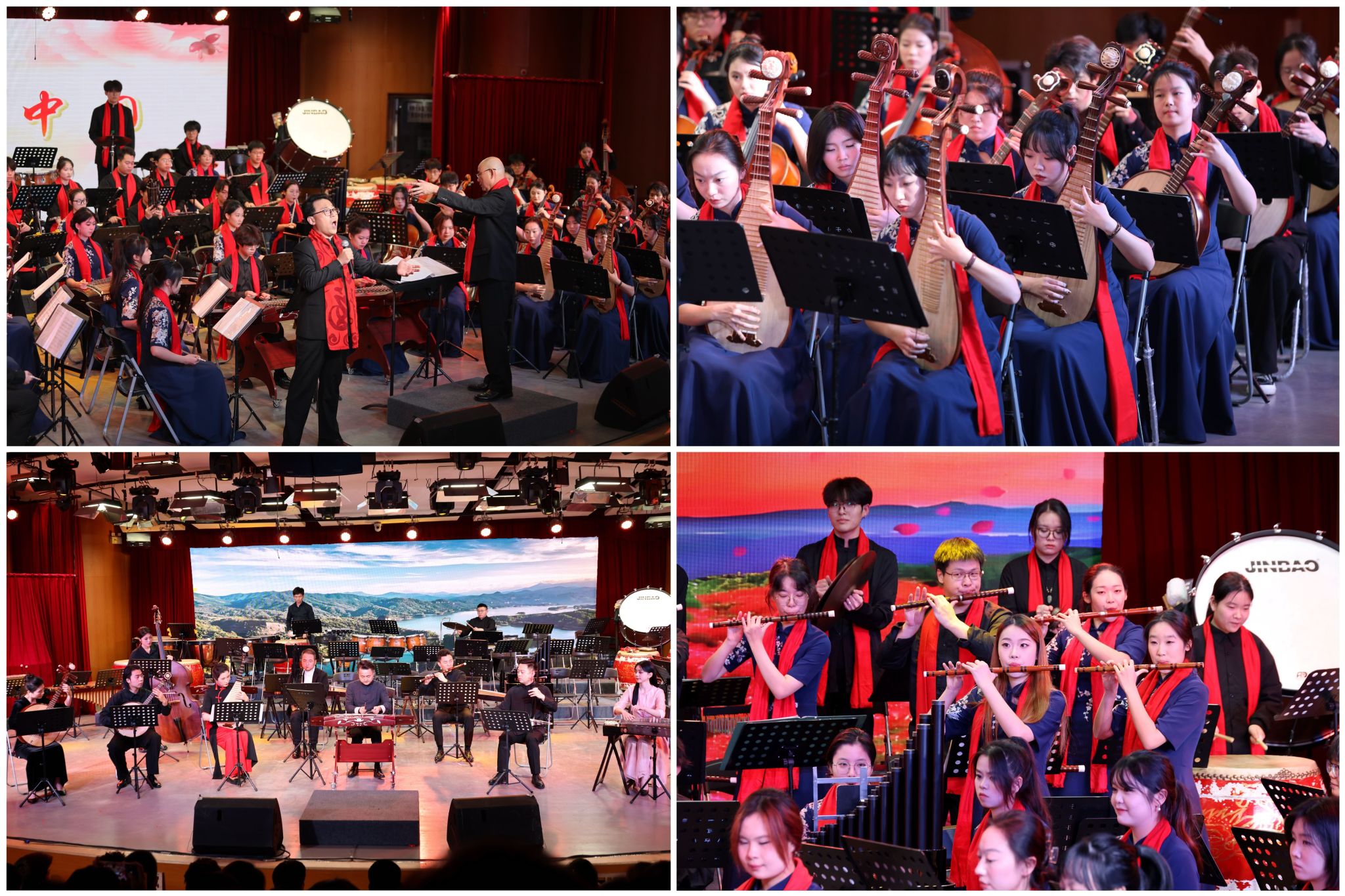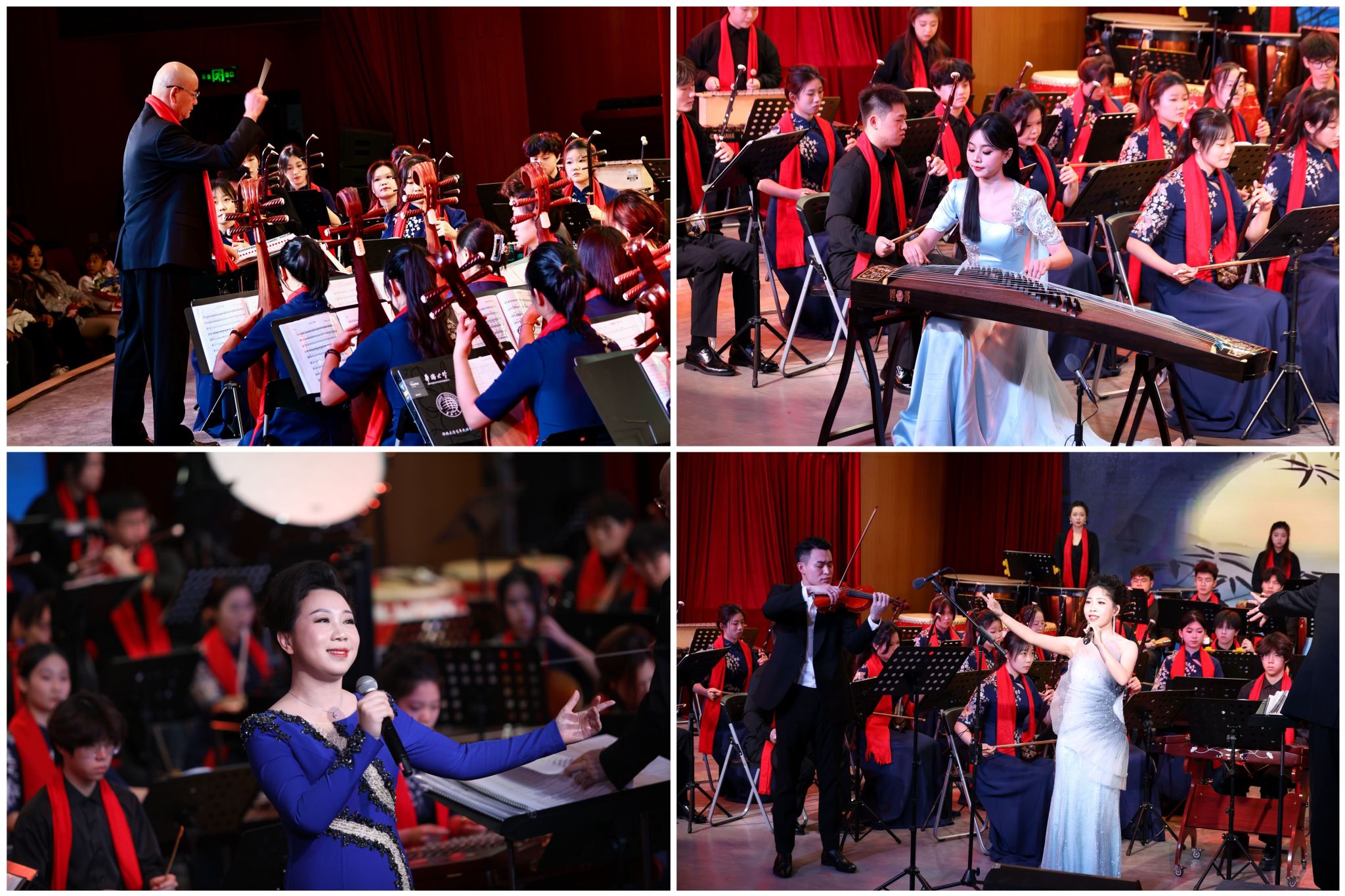 本次音乐会由校党委宣传部、党委学工部、音乐舞蹈学院主办,由华侨大学民族管弦乐团精彩献演。音乐会以《金蛇狂舞》拉开帷幕,以其昂扬的旋律和铿锵有力的锣鼓声展现了节日的欢腾气氛。随后,《茉莉花》《芦花》《渔舟唱晚》等一系列富有中国特色的作品相继上演,从不同角度展现了中国传统民族管弦乐的独特魅力。