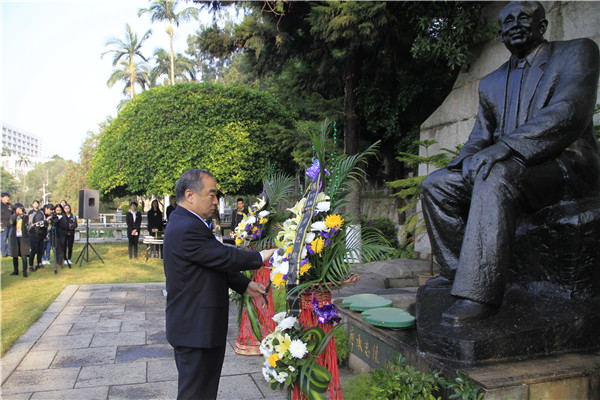 据了解,每年清明节,我校都会举办各类缅怀廖承志校长活动。今年,我校还在微博、微信等新媒体平台发起纪念廖承志校长活动。今天,我校师生并分别向陈嘉庚铜像、许东亮铜像、庄金川铜像献花。