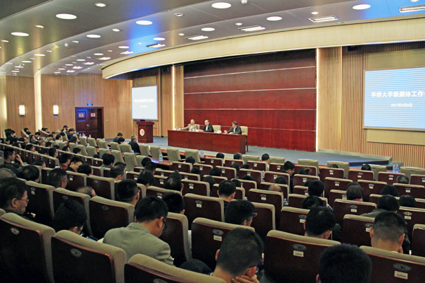 华侨大学新媒体工作会议今日下午在陈嘉庚纪念堂科学厅举行。
