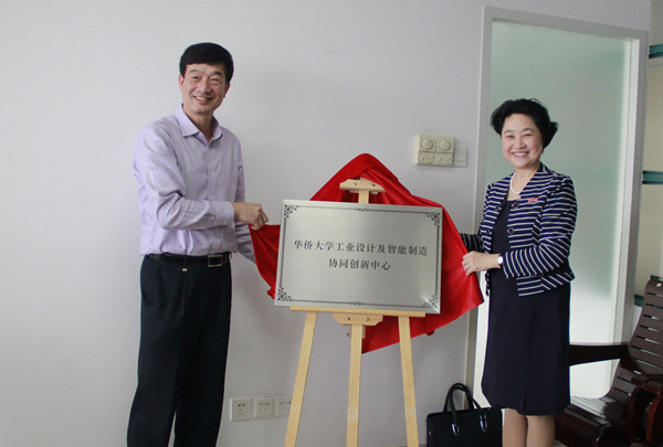 厦门理工学院校长、快速制造国家工程研究中心厦门研发中心主任陈文哲与华侨大学党委副书记朱琦环共同为协同创新中心揭牌。
