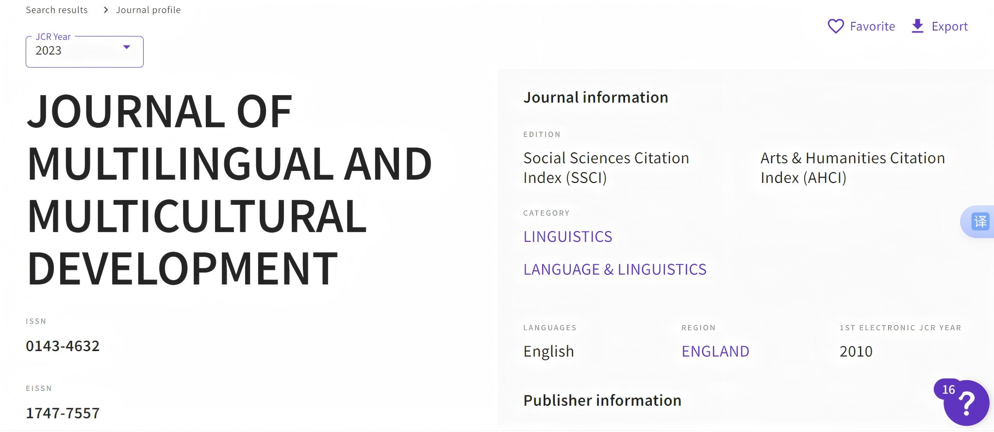 据悉,JMMD为JCR一区期刊、中科院分区Top期刊,同时被SSCI和A&HCI双检索,是展示语言与文化、语言政策与规划和语言实践等领域最新研究成果的高端平台。