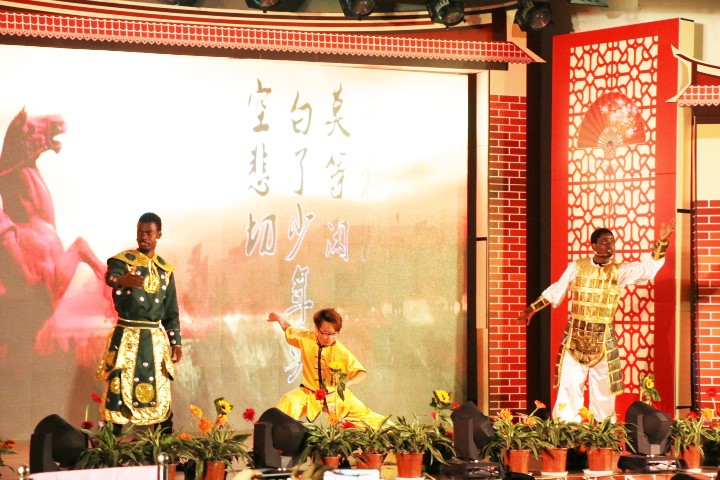 受学生们的感染,孟坤登台深情朗诵了李白的古诗《静夜思》,以表达其思乡之情。