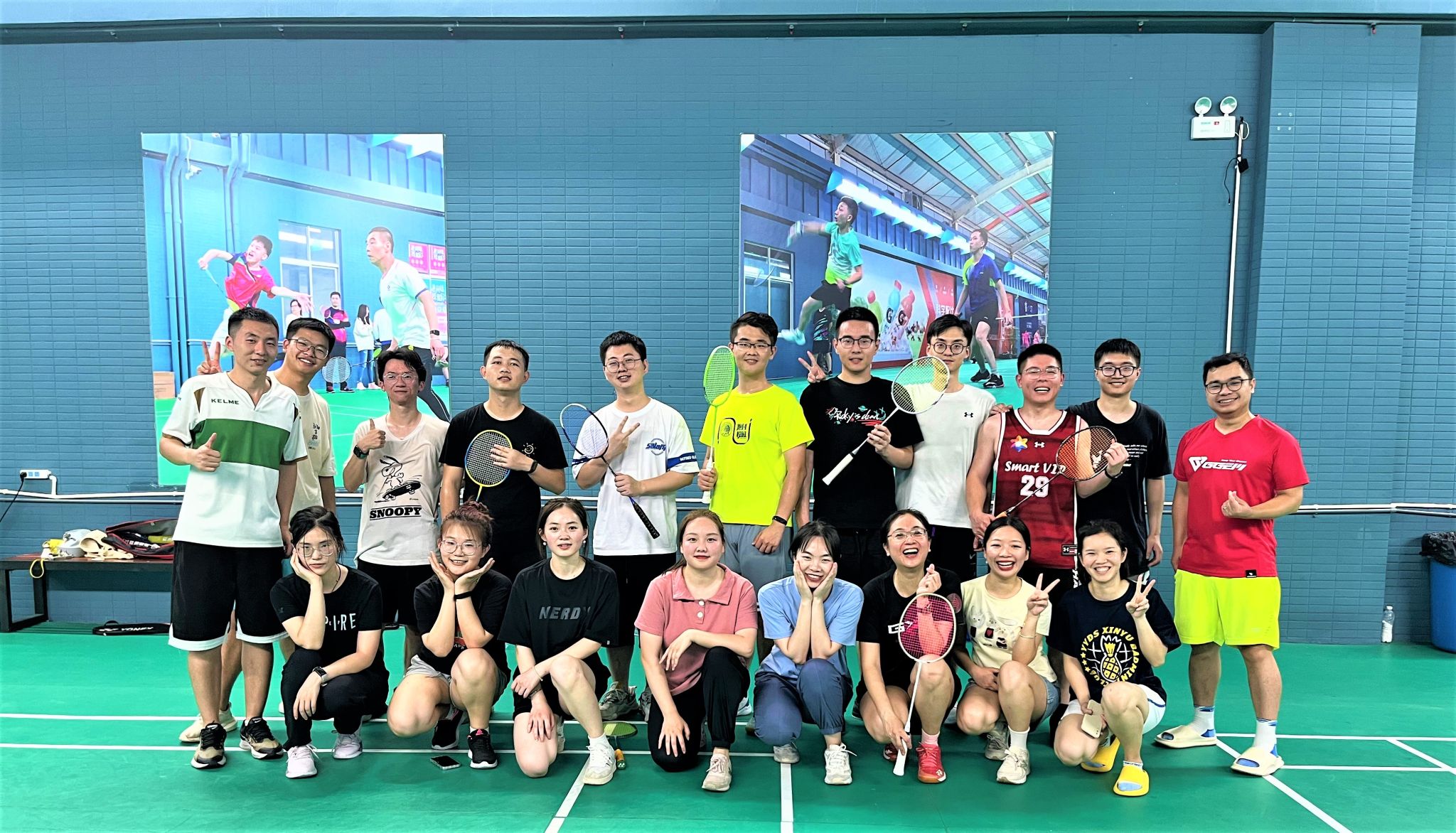 师生羽毛球赛后合照,第一排左三为陈婧