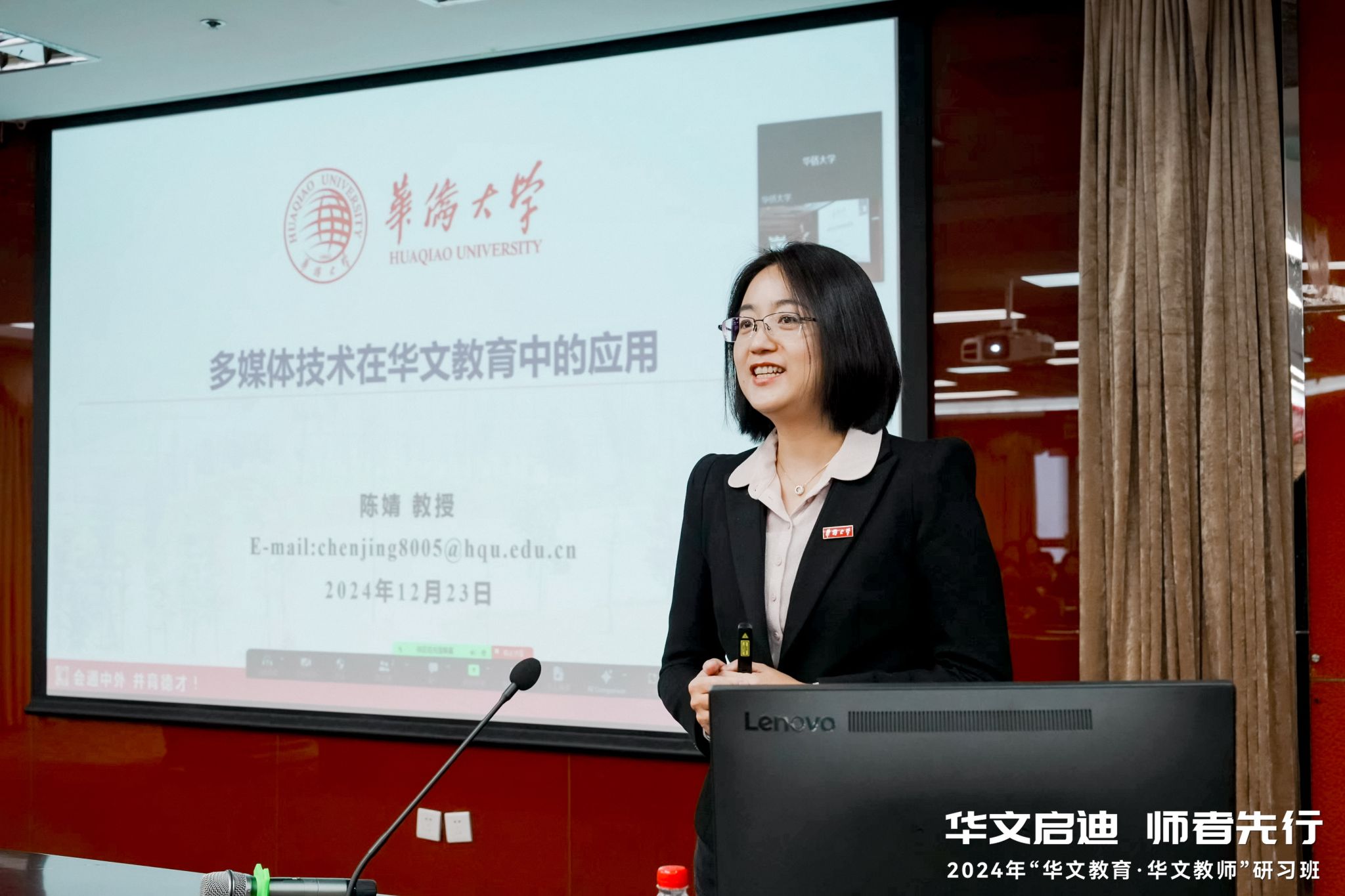 凭借扎实的教学功底和创新的教育理念,陈婧多次受邀在华文教师研修班授课,为华文教育的传承与发展贡献力量。她教授的本科课程《数字信号处理》获评福建省级一流本科课程,荣获福建省高等教育教学成果奖一等奖、华侨大学第十届高等教育教学成果奖二等奖等多项荣誉。她更让无数学生记住了“知识原来可以如此有温度”——常有学生毕业多年后发信息和她谈起当年某堂课、某个场景、某个时刻对其个人的影响,这是陈婧最珍视的宝藏。