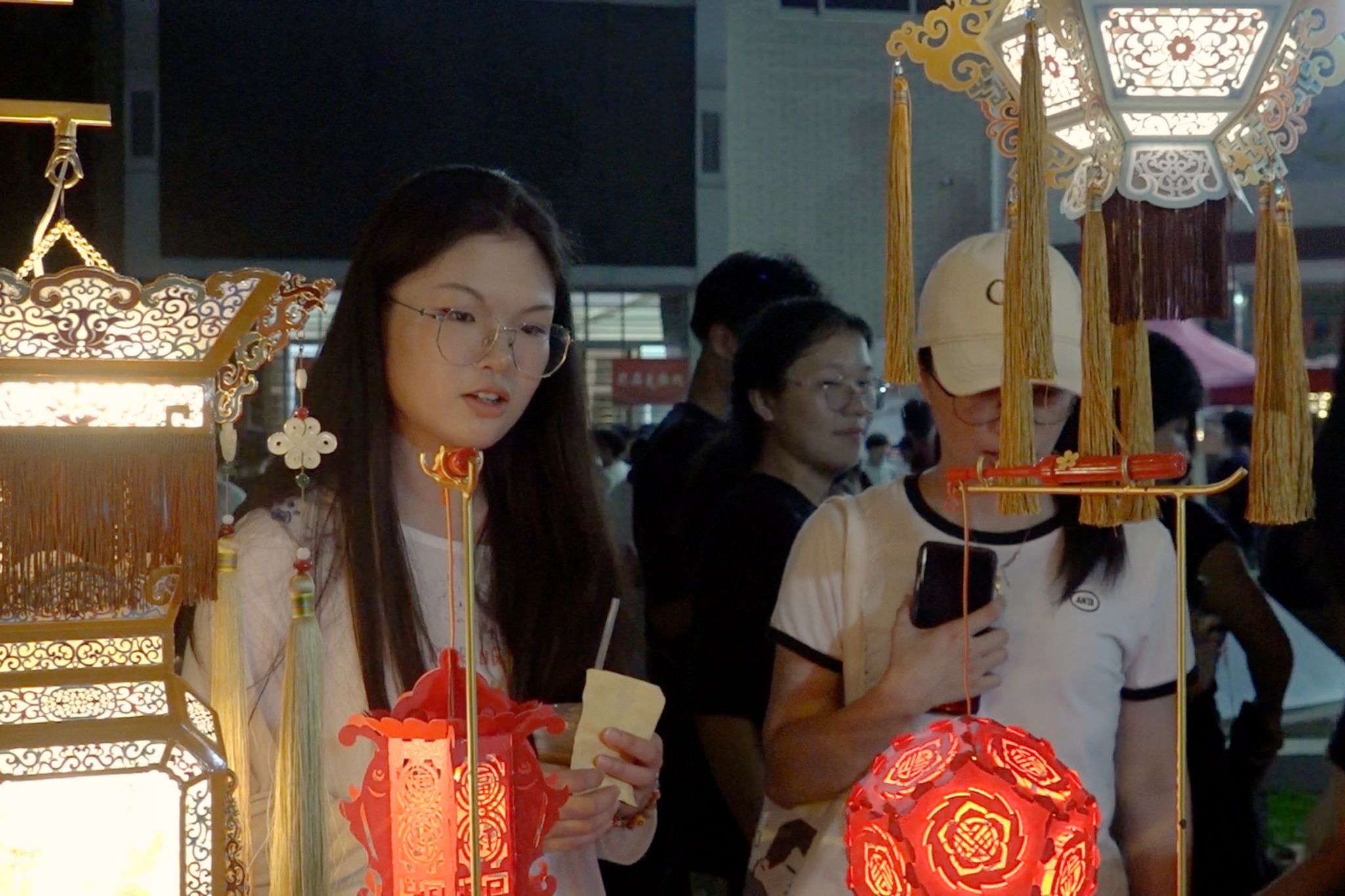 今年国庆中秋假期,华侨大学旅游学院2025级研究生张依祺(左)参加学校游园活动。