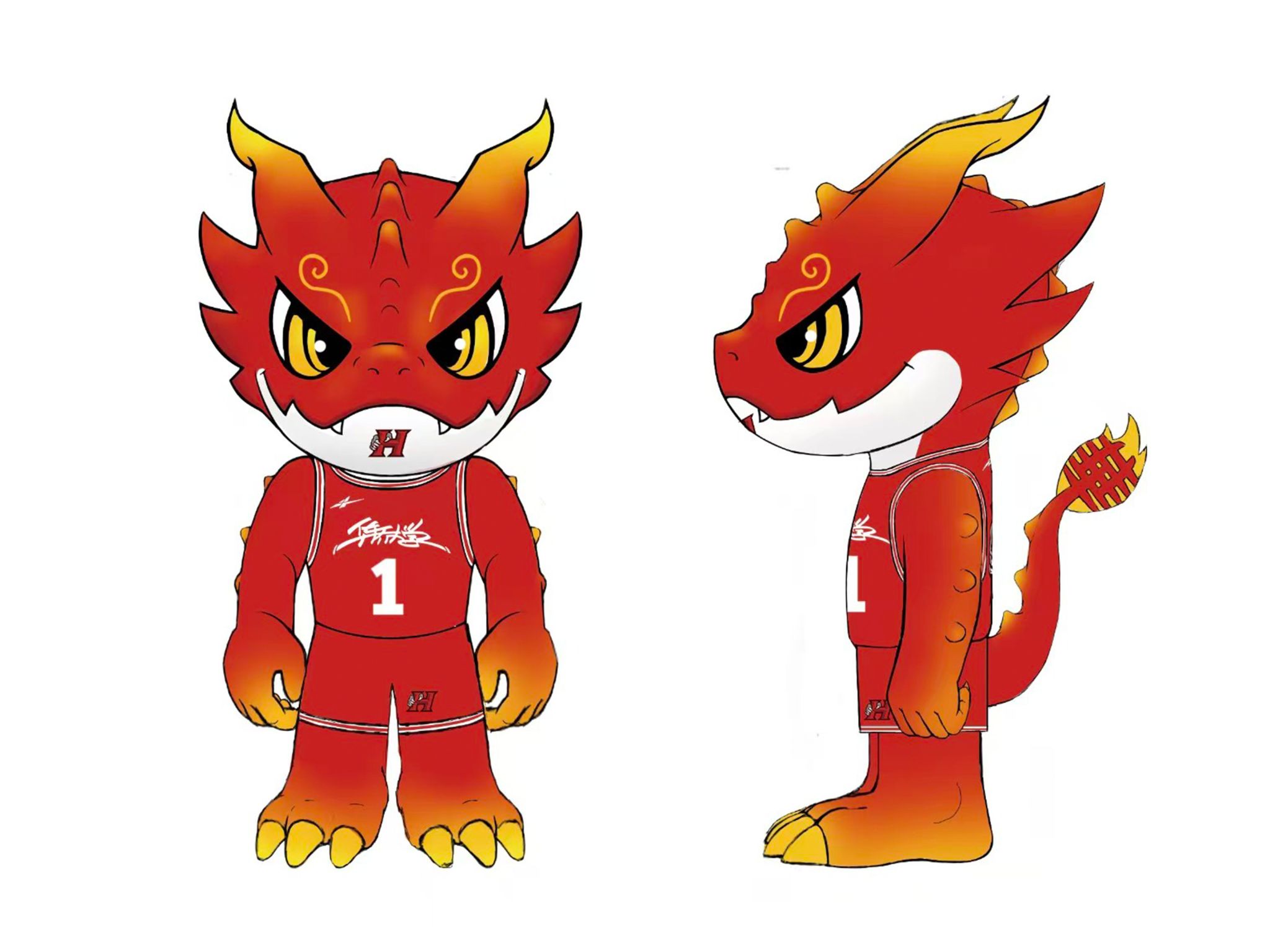 “龙仔”胸前的“H”标识取自“华侨大学”英文名称首字母,设计中巧妙融入了龙爪元素,寓意“华侨是龙的传人”,深刻体现了华侨大学“为侨服务、传播中华文化”的办学宗旨。吉祥物面部线条锐利有力,双眸炯炯有神,展现出竞技体育中坚毅果敢、永不言败的信念。其身着的红色球衣上印有醒目的号码“1”,寓意着争创一流、勇立潮头的决心,生动诠释了“敢拼能赢、永不言弃”的华大男篮精神。