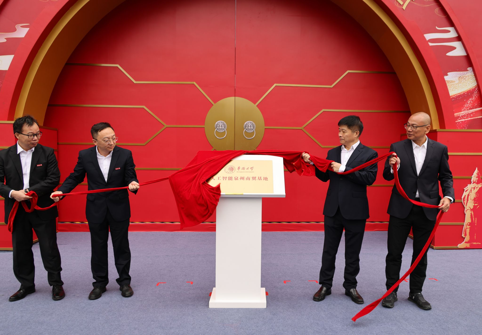 华侨大学副校长缑锦等共同为华侨大学人工智能泉州南翼基地揭牌