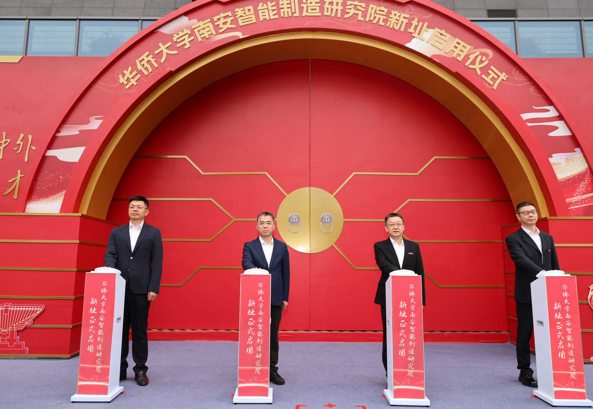华侨大学党委书记徐西鹏、副校长黄辉,南安市委书记张桂森、市长王连赞共同按下研究院新址启用键