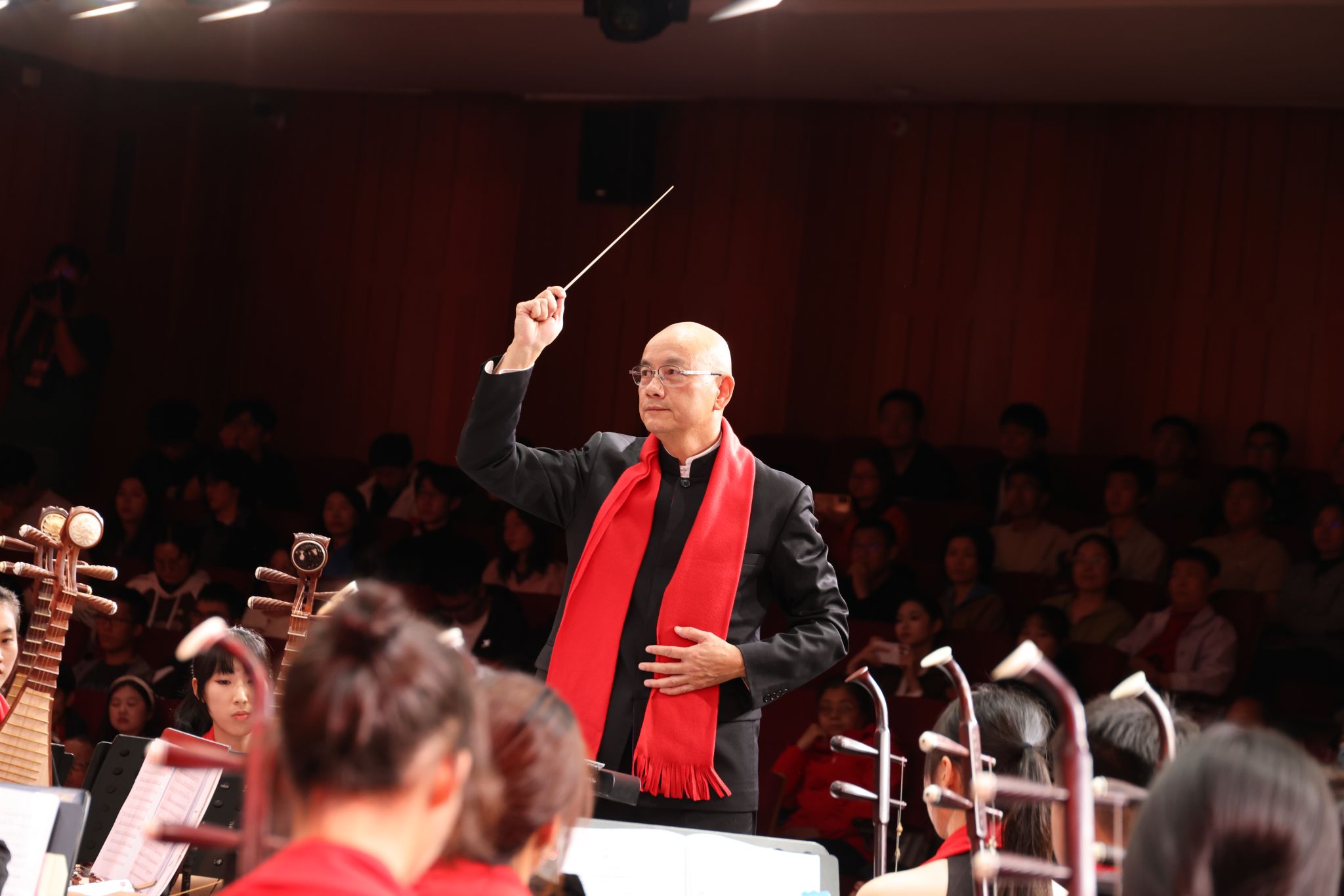 本次音乐会由校党委宣传部、党委学工部、音乐舞蹈学院主办,华侨大学民族管弦乐团倾情献演。音乐会在原创民族管弦乐《吉日序曲——祥龙入海》中拉开帷幕。该作品由我校音乐舞蹈学院教师、青年作曲家孙晶创作,以“海上丝绸之路”为灵感,描绘了中国船队扬帆远航的壮丽画卷,奏响了开放包容、文明互鉴的时代之声。