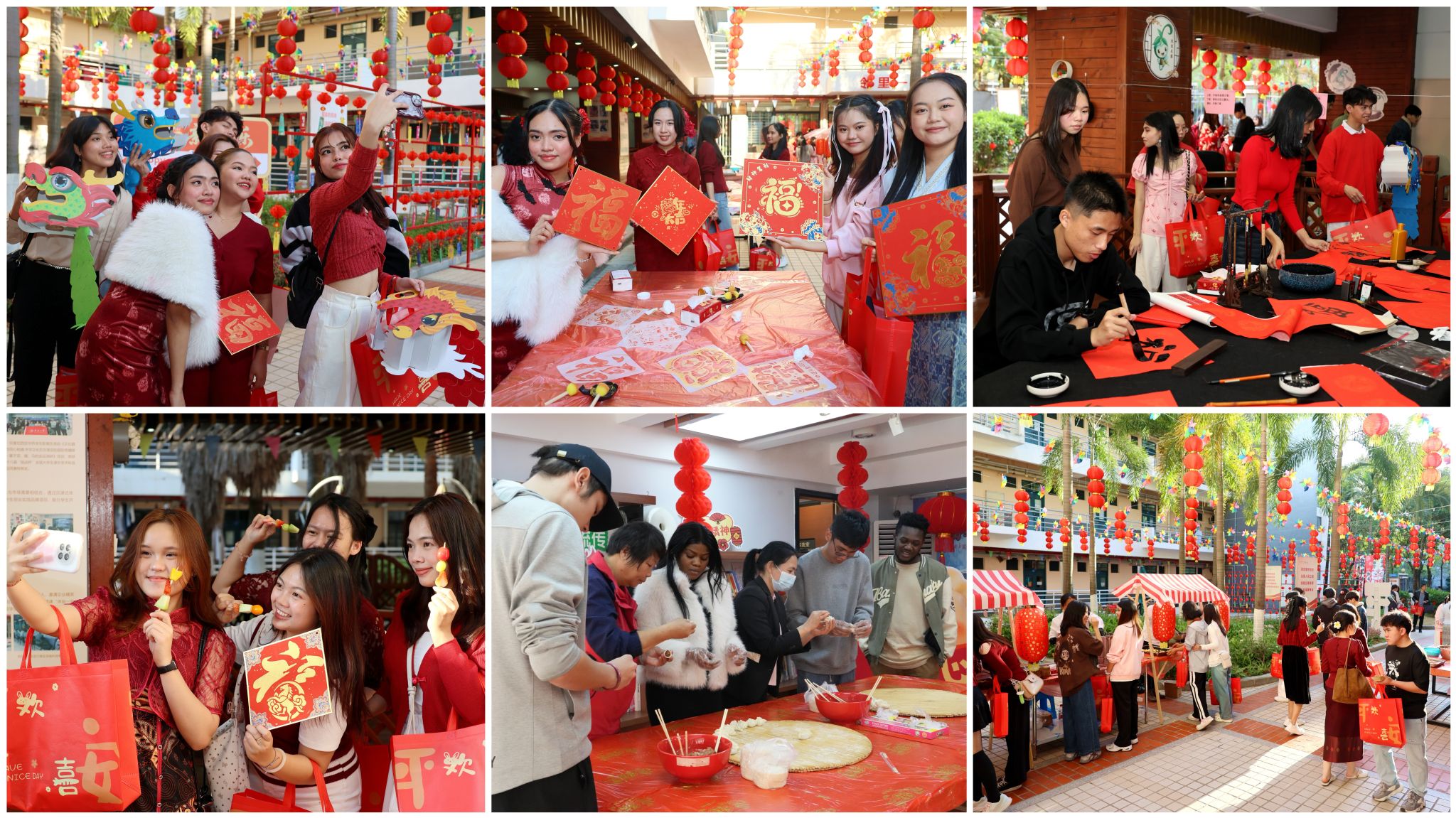 “第一次过年离家千里,没想到学校准备了这么多有意思的活动。和大家一起体验传统年俗,包饺子、做灯笼、剪窗花……这些活动都很有趣。这个春节过得很不一样,也很有意义。”旅游学院2024级缅甸留学生杨连金感慨道。