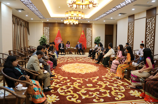 我校海上丝绸之路研究院、华文学院、华文教育处、国际交流合作处等单位相关负责人及缅甸在校学生代表参加会见。