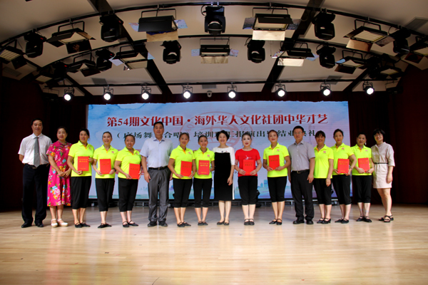 第54期“文化中国·海外华人文化社团中华才艺(广场舞、合唱)培训班”汇报演出暨结业典礼7月14日下午在我校李碧葱音乐舞蹈大楼举行。来自美国、法国、英国、德国、俄罗斯、澳大利亚等十七个国家的六十余名华人文化社团骨干顺利结业。