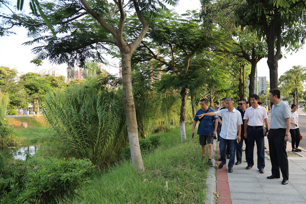 考察团一行考察学校生态河道