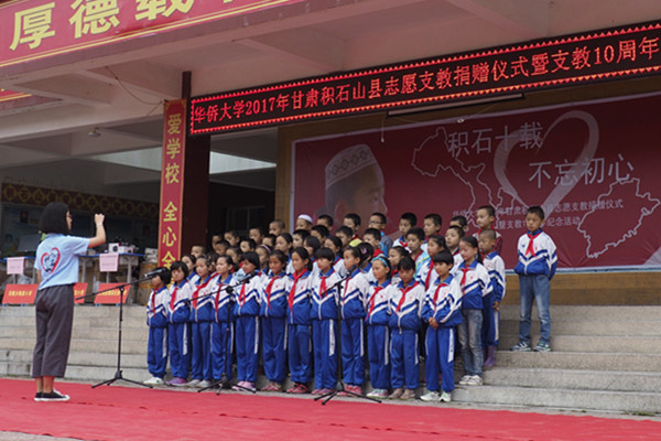 8月5日,华侨大学2017年甘肃积石山县志愿支教捐赠仪式暨支教10周年纪念活动在积石山县保安族中学举行。