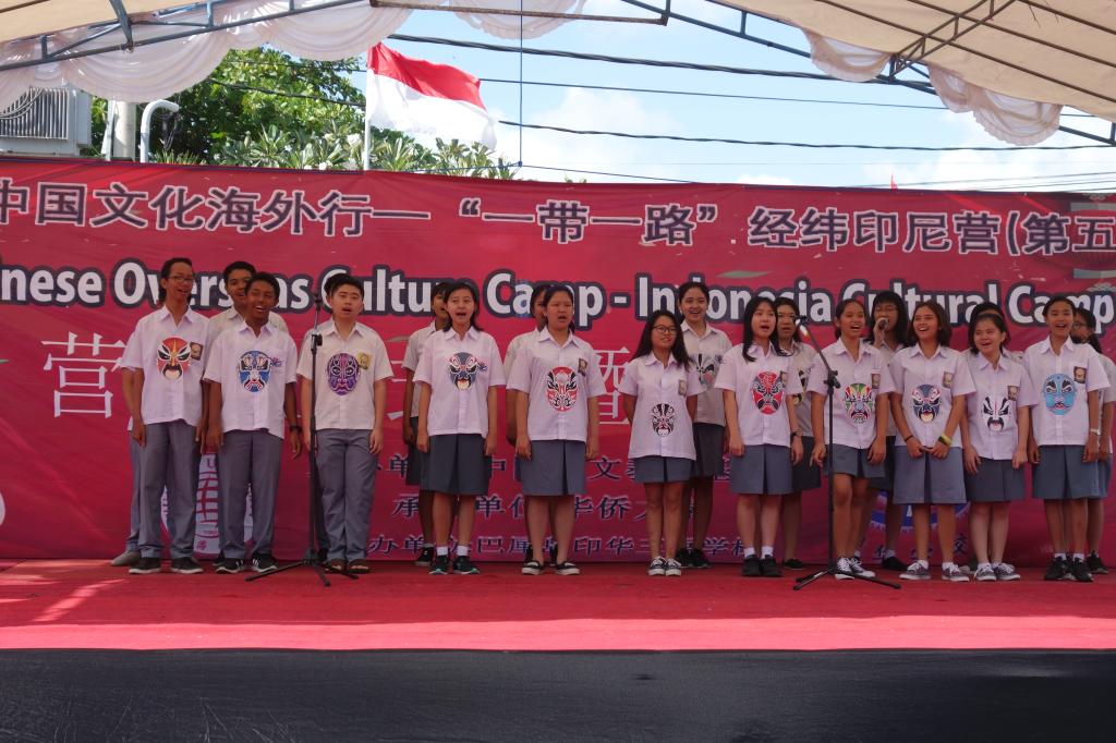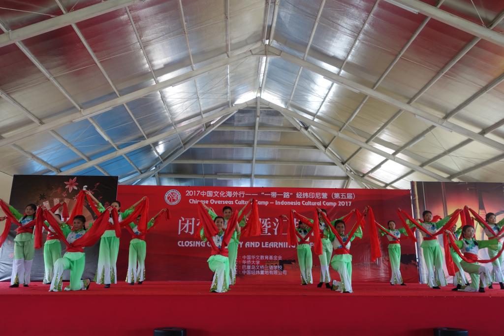 近日,由中国华文教育基金会主办,华侨大学承办,印尼文桥三语学校、印华三语学校协办,中国经纬置地有限公司资助的“2017中国文化海外行——‘一带一路’经纬印尼营”闭营仪式暨汇报演出分别在文桥三语学校、印华三语学校举行。中国驻登巴萨总领事馆副总领事陈巍、董哲,中国华文教育基金会项目一部主管辛超,华侨大学教师团队,文桥三语学校创始人江连福、董事长江睿,印华三语学校董事长邱仕足,教师、营员及家长共800余人分别参加了在两校举行的闭营仪式。