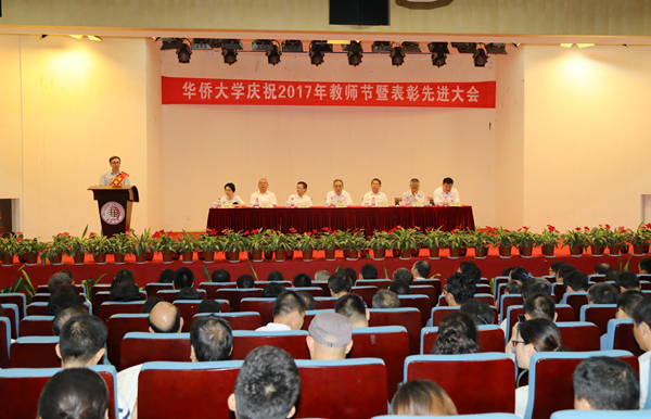 9月8日下午,我校在厦门校区召开庆祝2017年教师节大会,表彰近一年来在学校教学、科研、管理等工作中取得突出业绩的集体和个人。校领导贾益民、关一凡、朱琦环、徐西鹏、刘塨、刘斌、彭霈等出席并为获奖者颁奖,学校中层干部、教师及学生代表等与会。