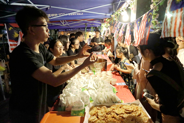 境外生们穿着华丽的民族服饰,或一边制作着食物,一边叫卖;或围成圆圈,跳起了具有民族特色的舞蹈。泰国学生将芭蕉树叶摘下,铺在地面上,大家席地而坐,一起聊天做美食,展现了泰国人热情不拘的个性;台湾同学会将著名的台湾夜市带到了华侨大学,让华侨大学学生不出校门就能够品尝到来自台湾的特色小吃。