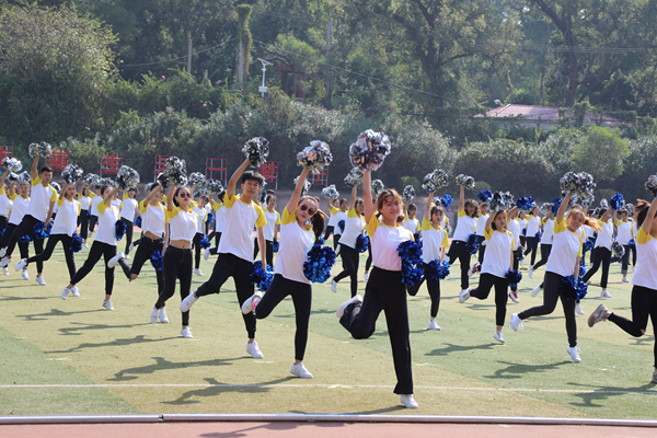 在文体表演环节,来自12个学院的同学们带来了本届校运会新增加的排舞比赛项目表演,用她们轻快的动作展现年轻的体魄,彰显华大学子的青春活力;由啦啦操校队和健美操体育班的120名同学带来的踏板操表演《飞舞的旋律》,用欢快的节奏点燃了运动的热情,奏响了运动的主旋律。